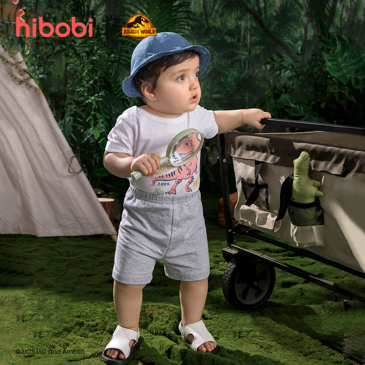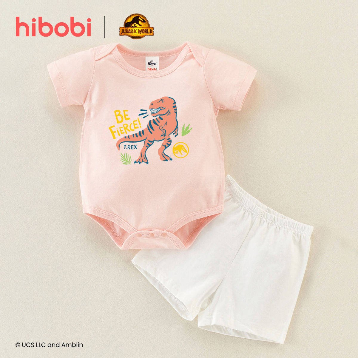 hibobi×Jurassic Baby Cartoon Print Short Sleeve Cotton Jumpsuit&Shorts Wholesale