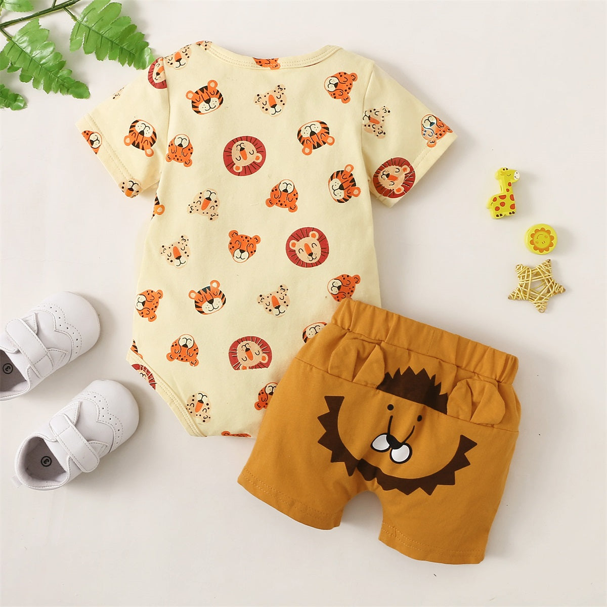 hibobi Baby Boy Cartoon Print Short Sleeve Cotton Jumpsuit & Shorts Wholesale