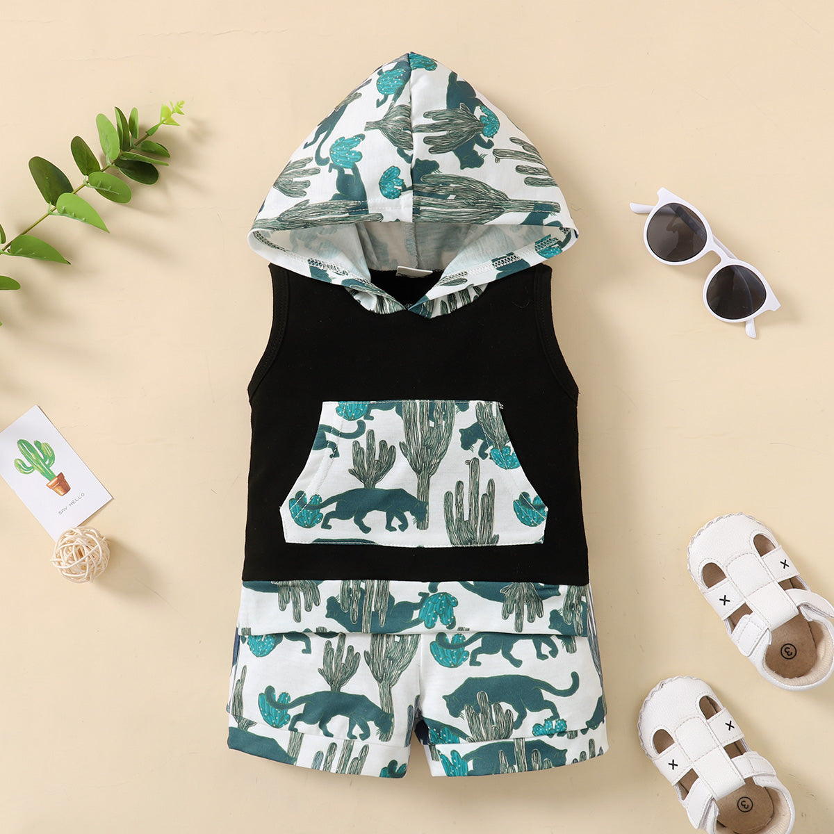 hibobi Baby Cute Animal Print Hooded Top And Shorts Two-Piece Wholesale