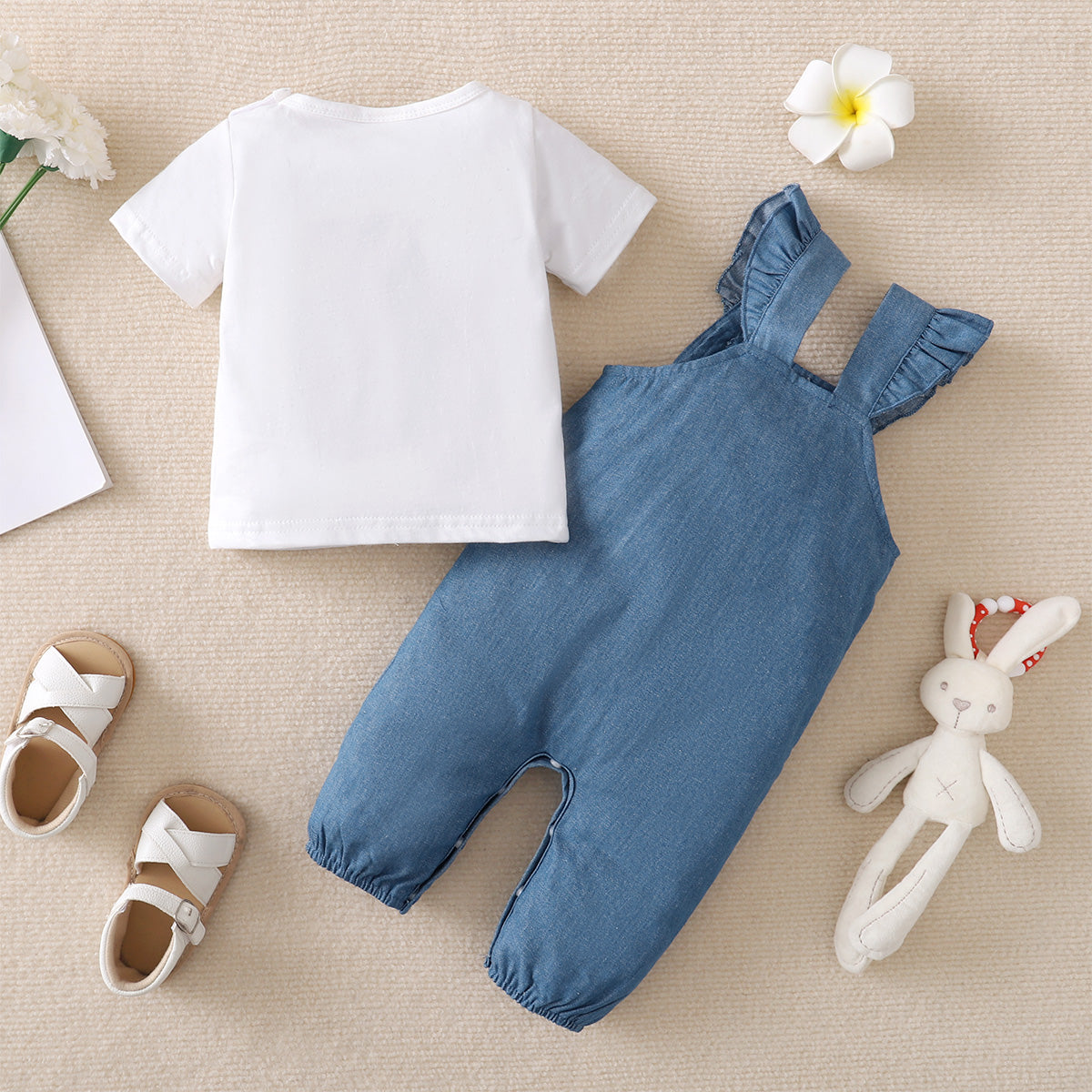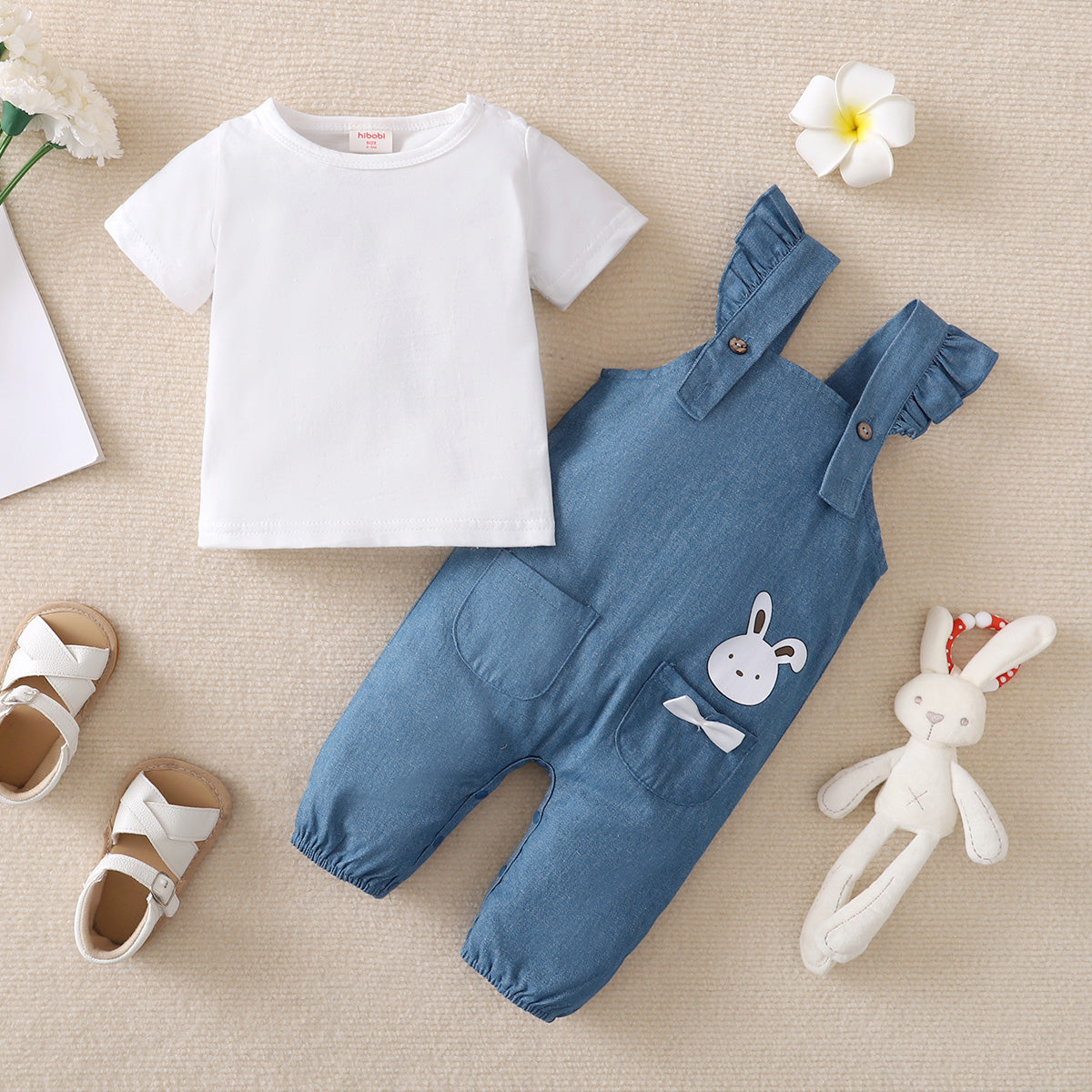 hibobi Baby Girl Cute Bunny Print Denim Vest Two-Piece Wholesale