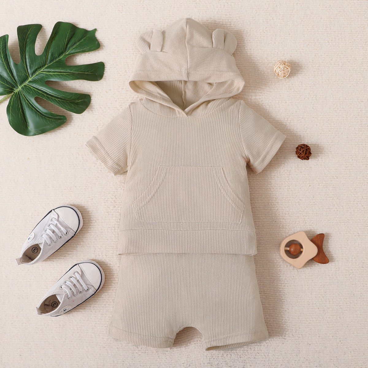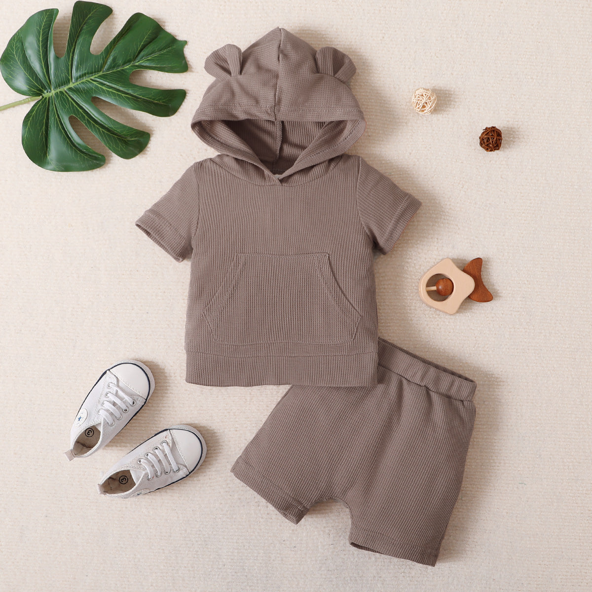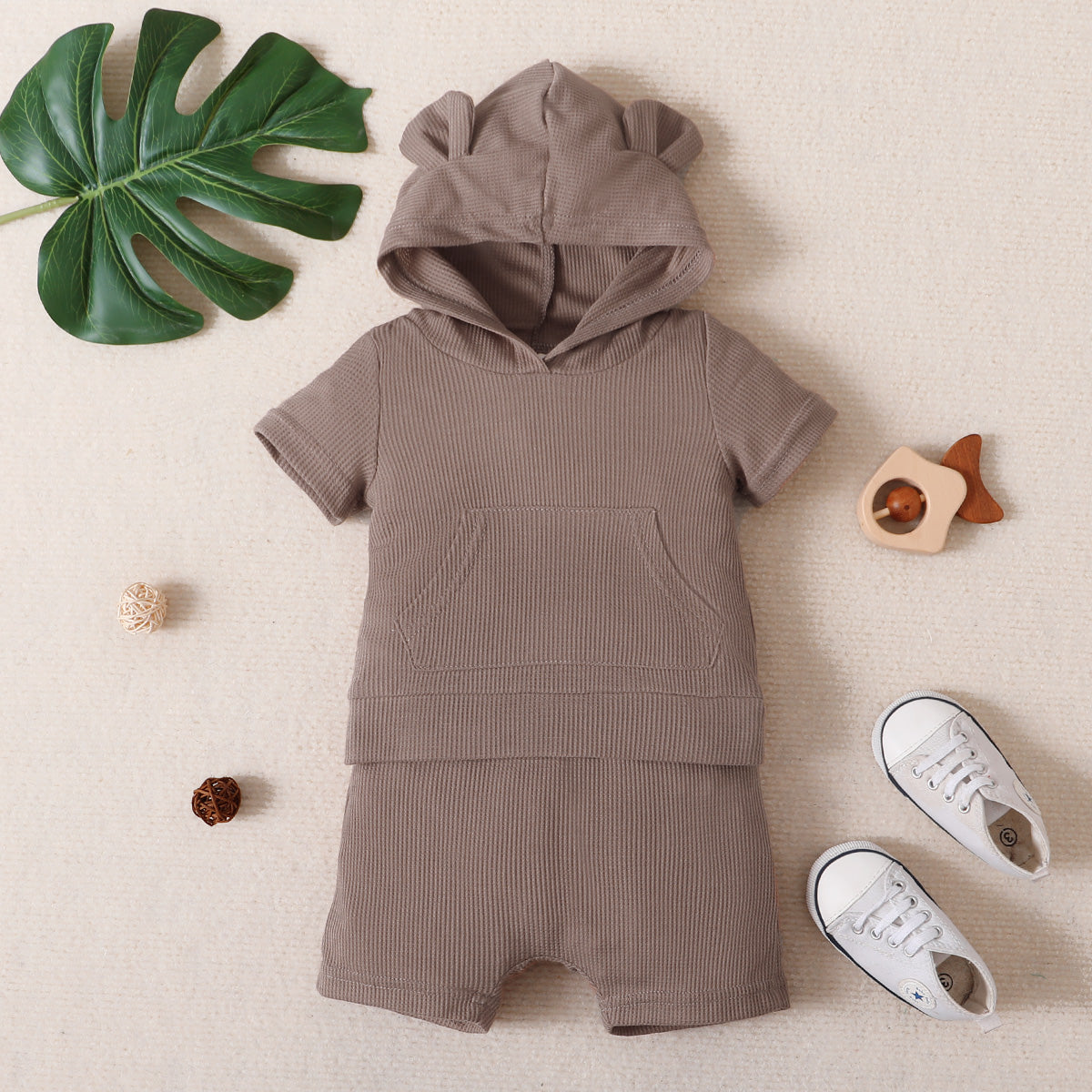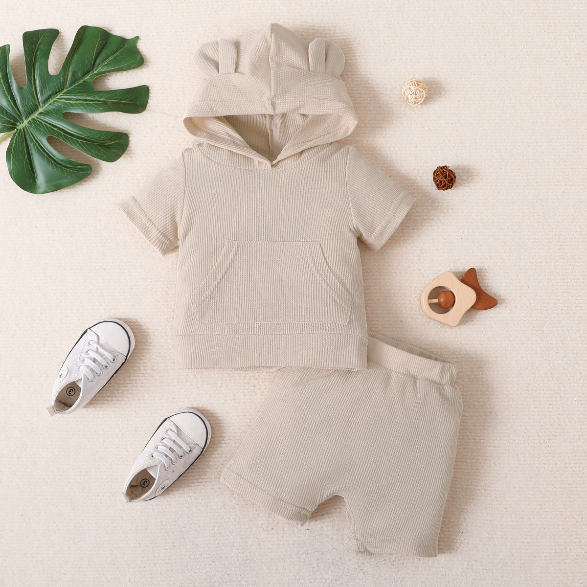 hibobi Baby Short Sleeve with Hood Solid Colour Woven Two-Piece Wholesale