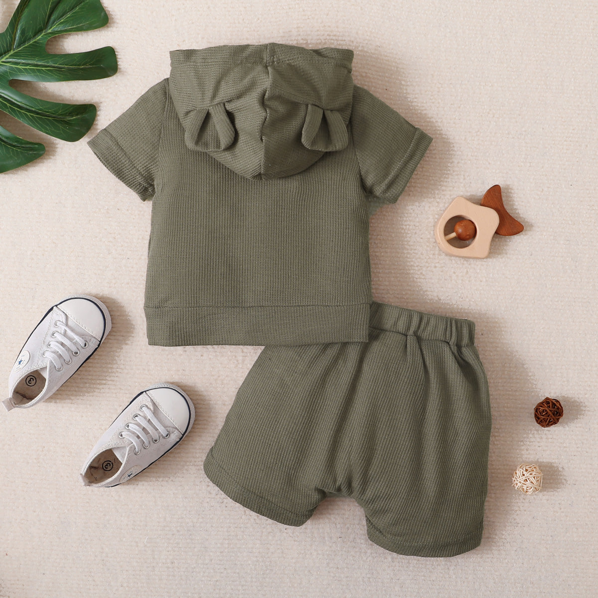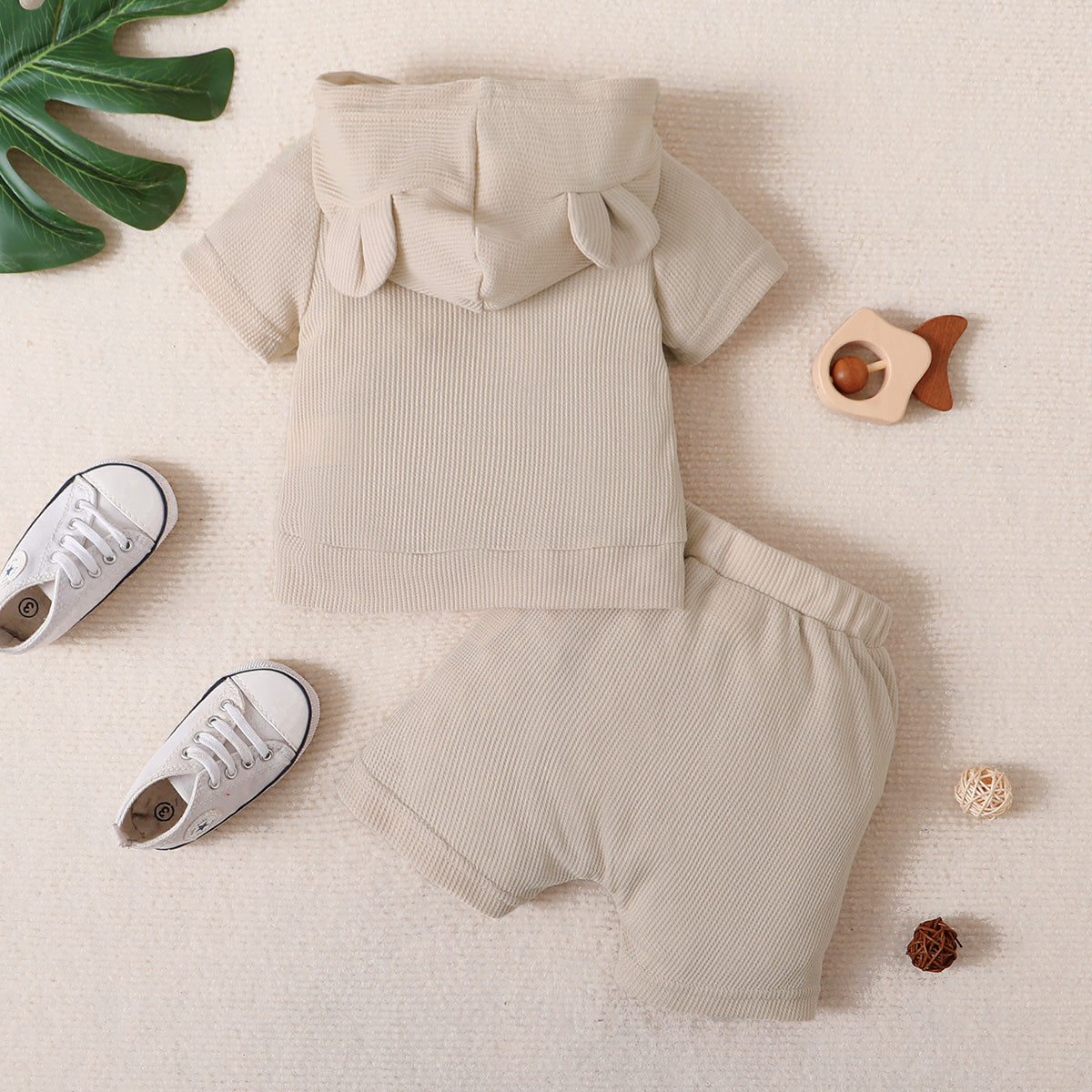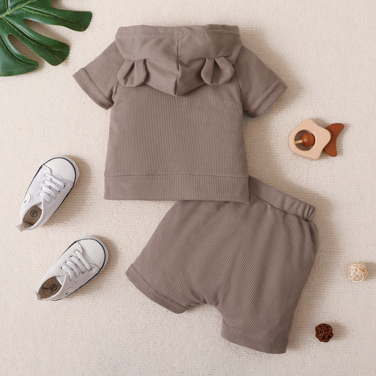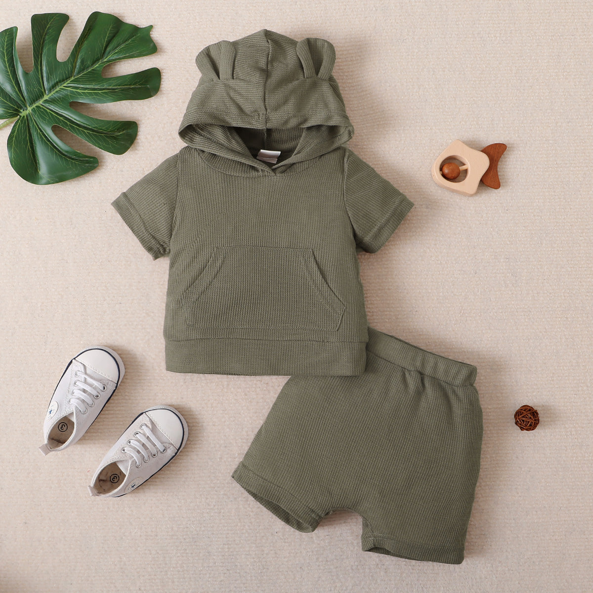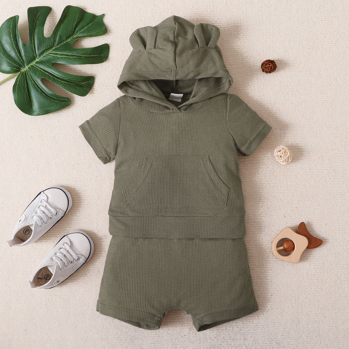 hibobi Baby Short Sleeve with Hood Solid Colour Woven Two-Piece Wholesale