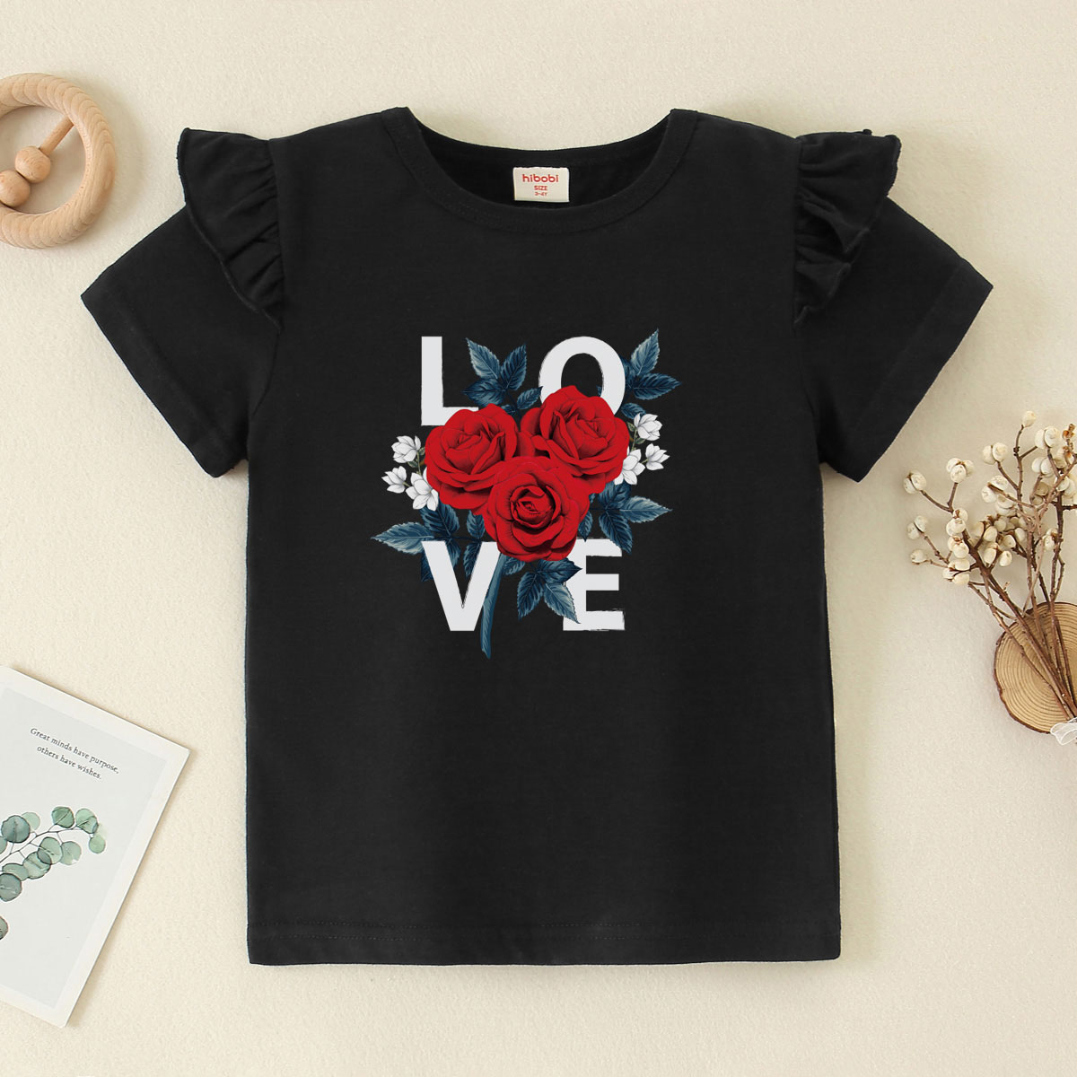 Toddler Girl Baby Alphabet Roses Print Fly Sleeve T-Shirt Suit Wholesale