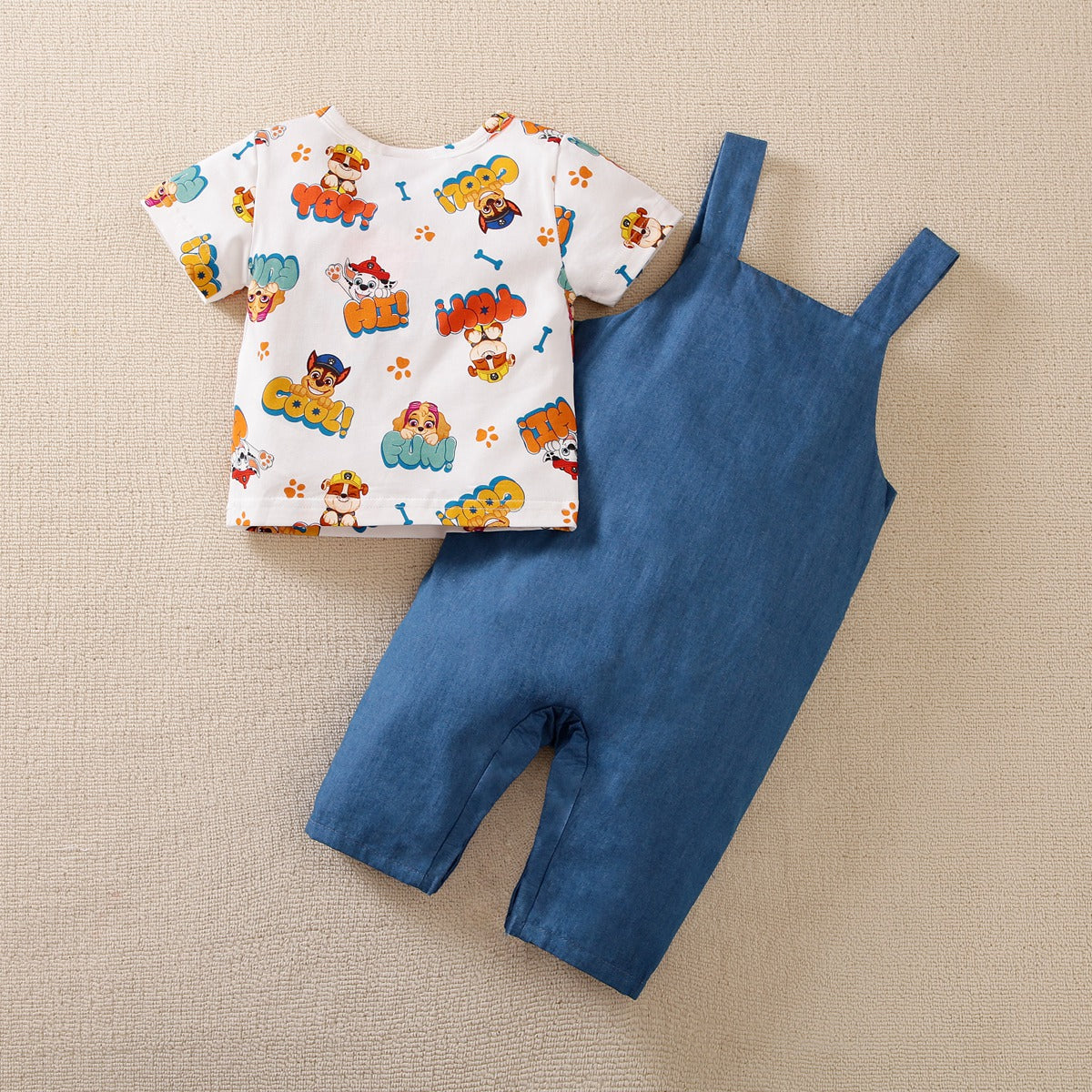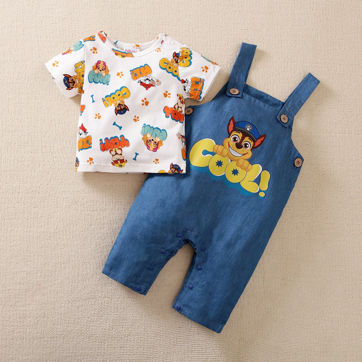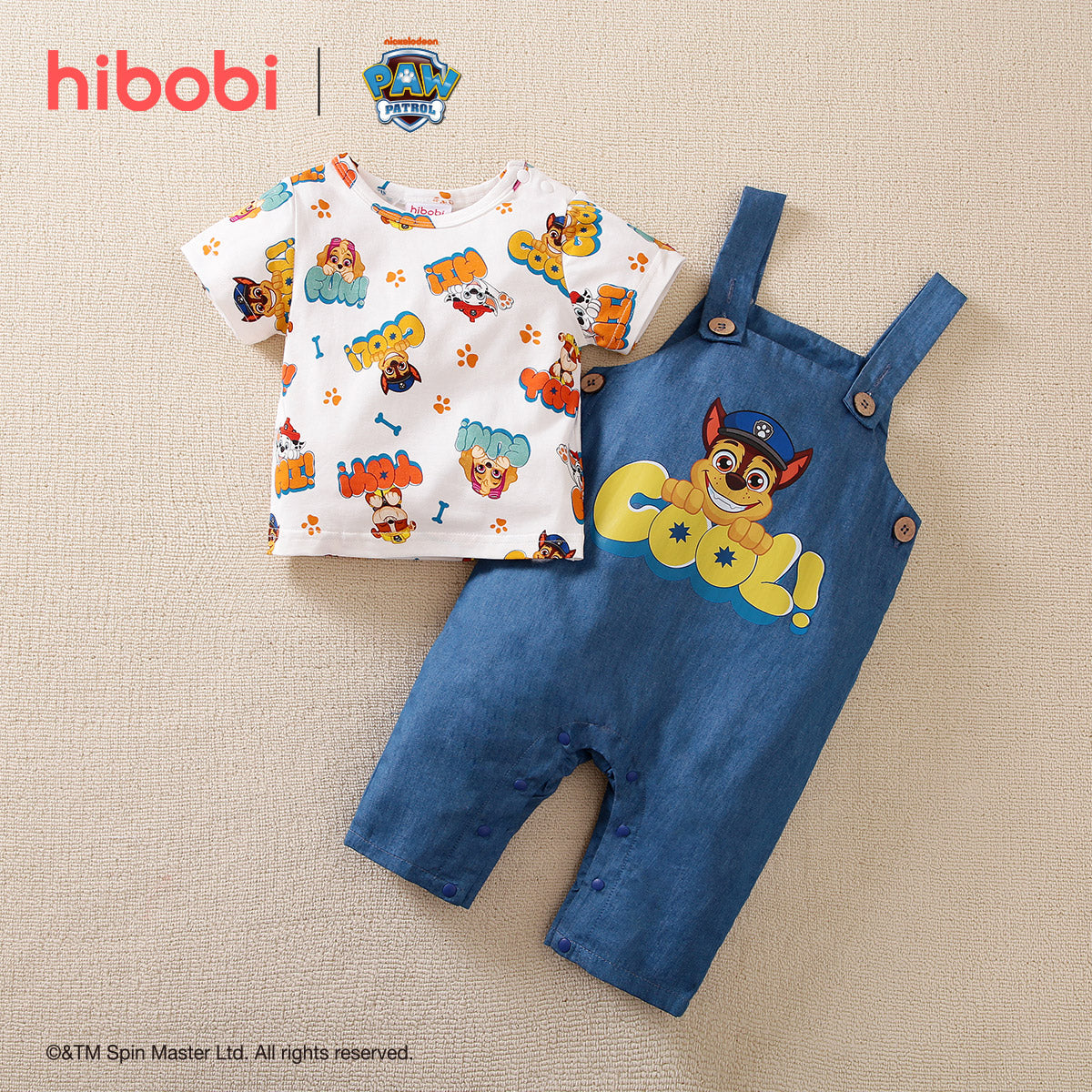 hibobi×PAW Patrol Baby Boy Cartoon Print Short Sleeve Cotton T-shirt and Backpack Pants Set Wholesale