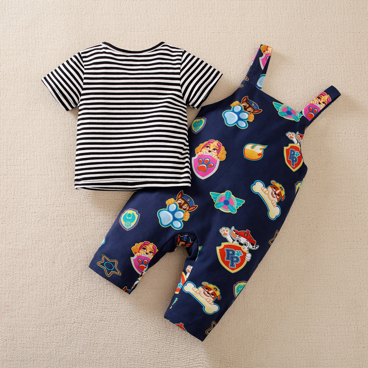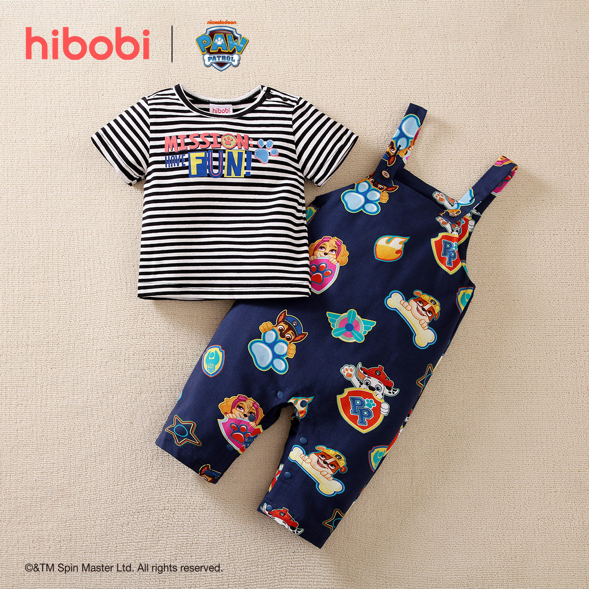 hibobi×PAW Patrol Baby Boy Cartoon Print Stripes Short Sleeve Cotton T-shirt and Suspender Pant Wholesale