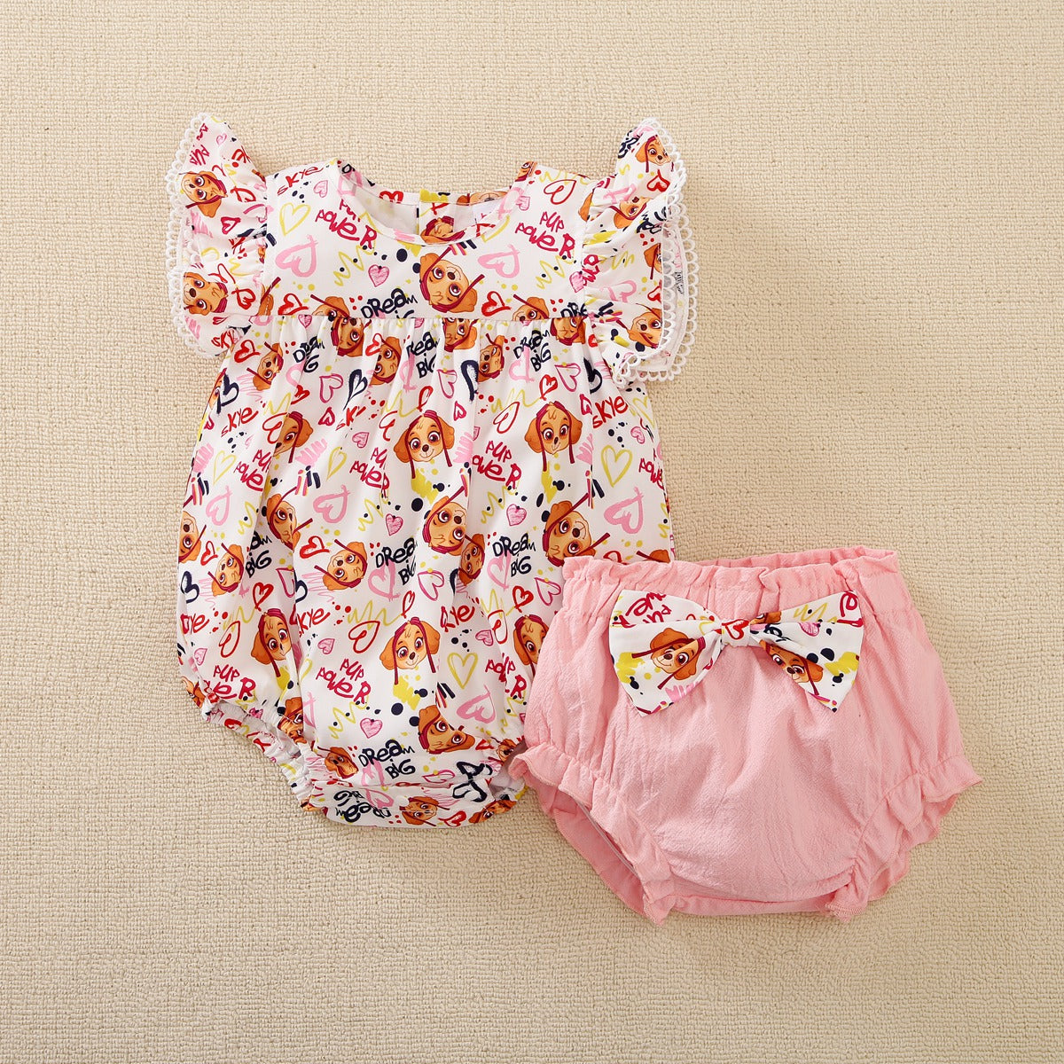 hibobi×PAW Patrol Baby Girl Cartoon Print Short Sleeve Jumpsuit & Shorts Wholesale