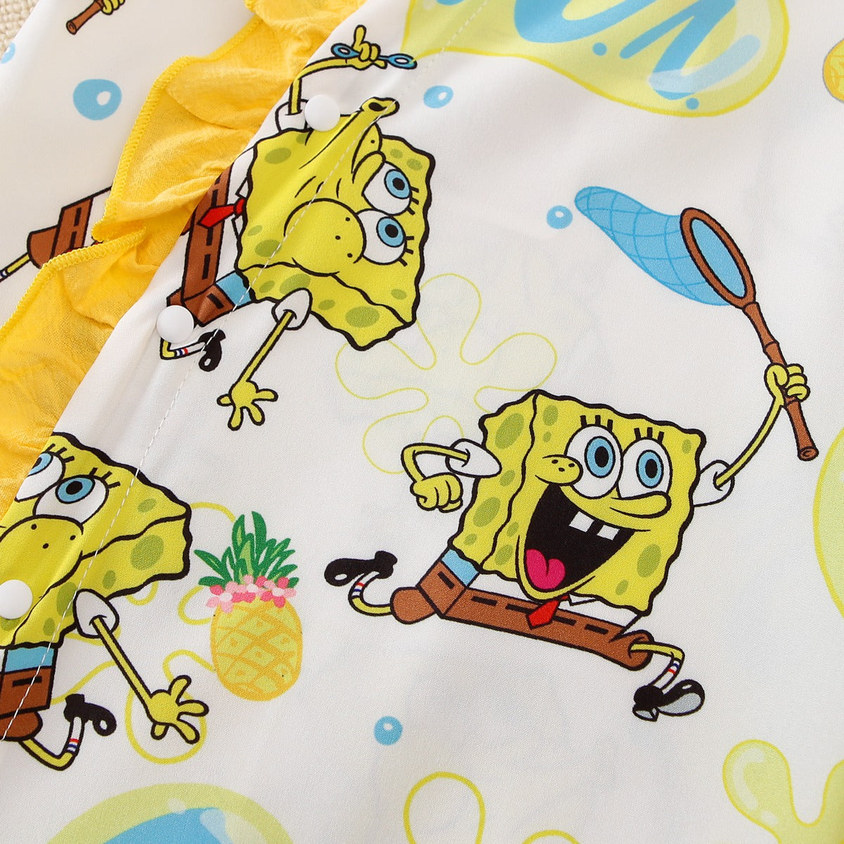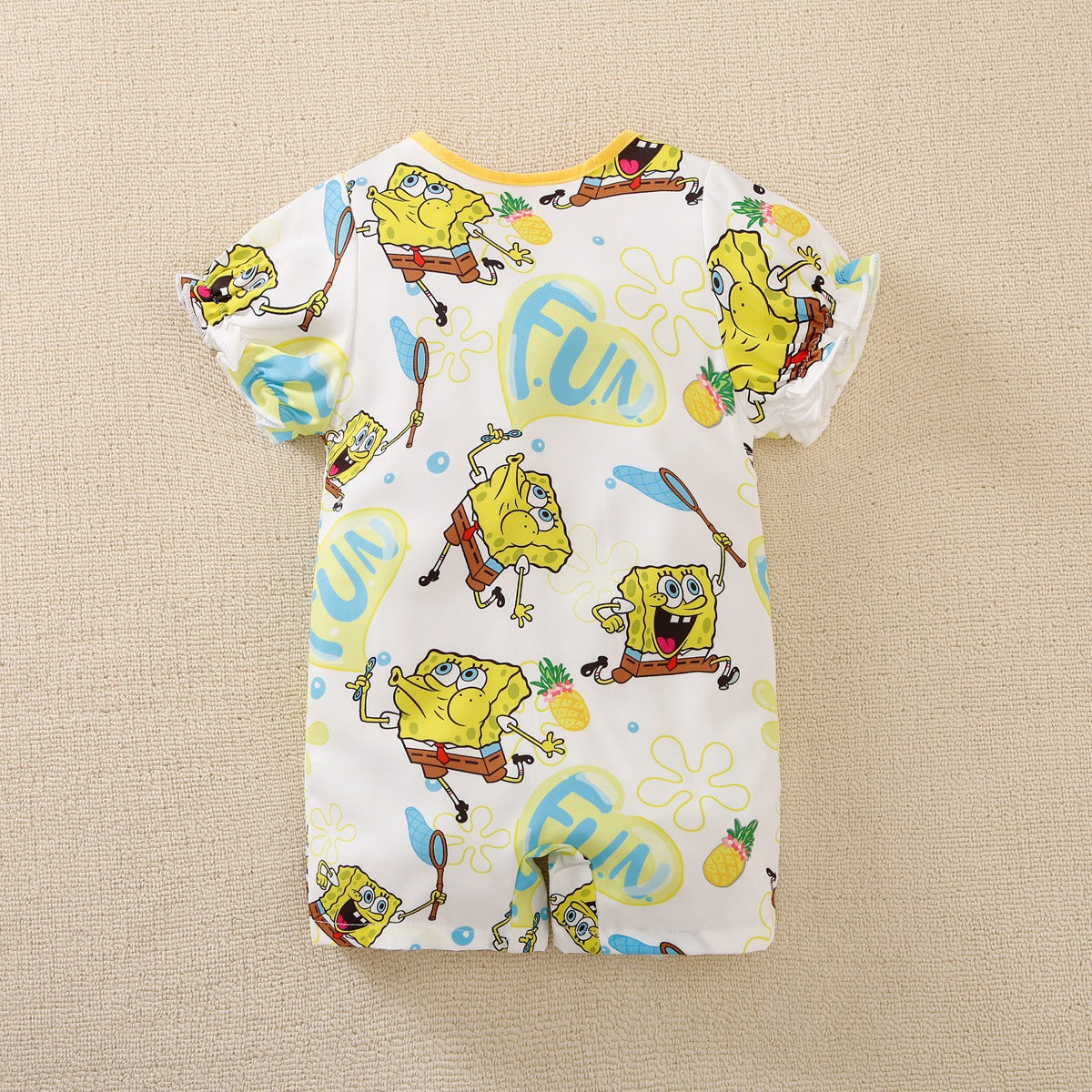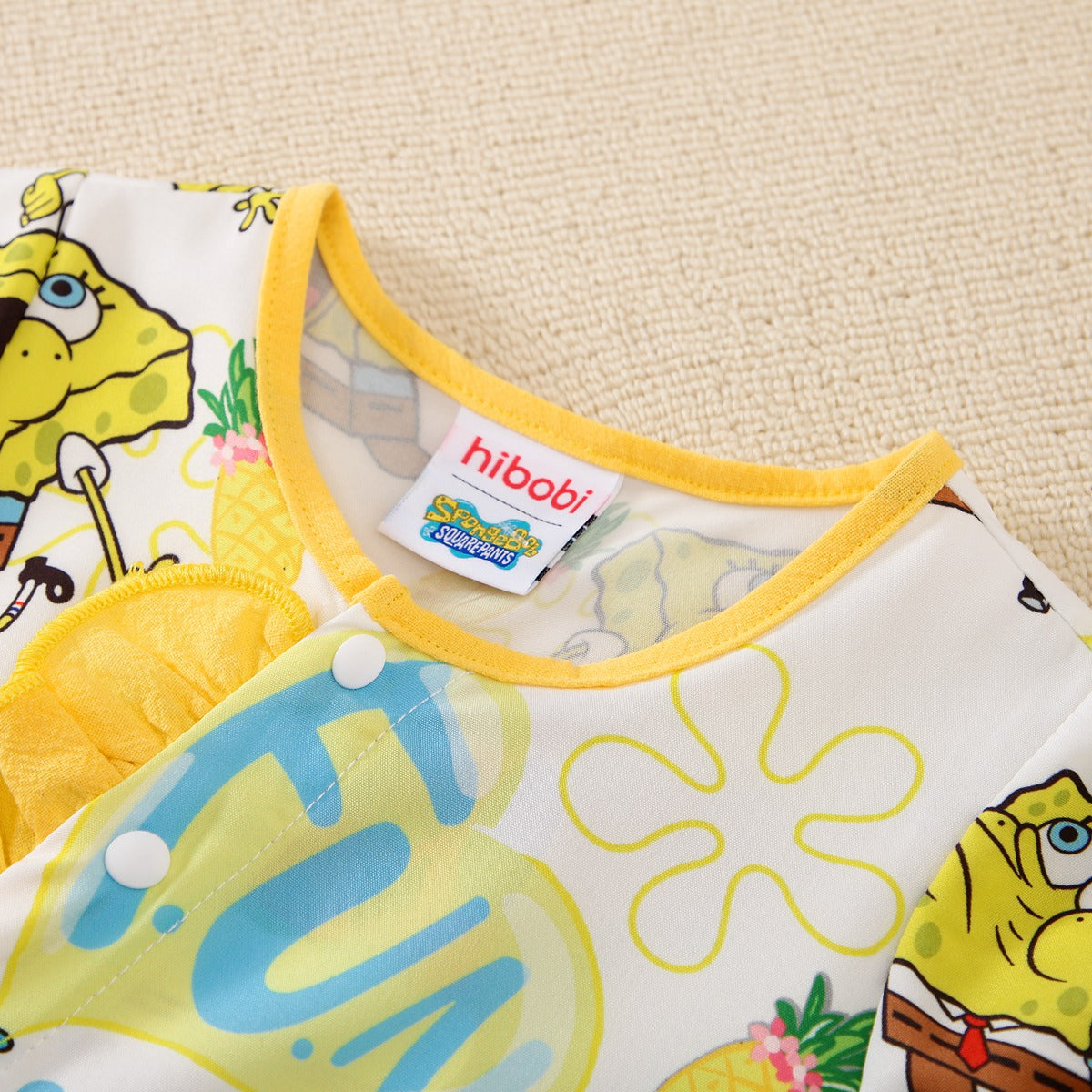hibobi×Spongebob Baby Girl Cartoon Print Ruffle jumpsuit Wholesale