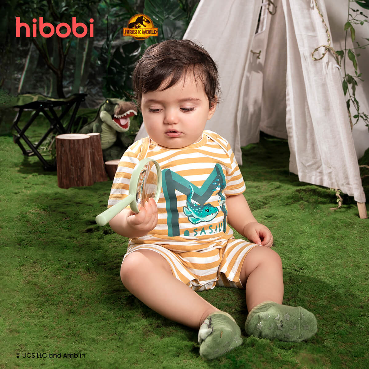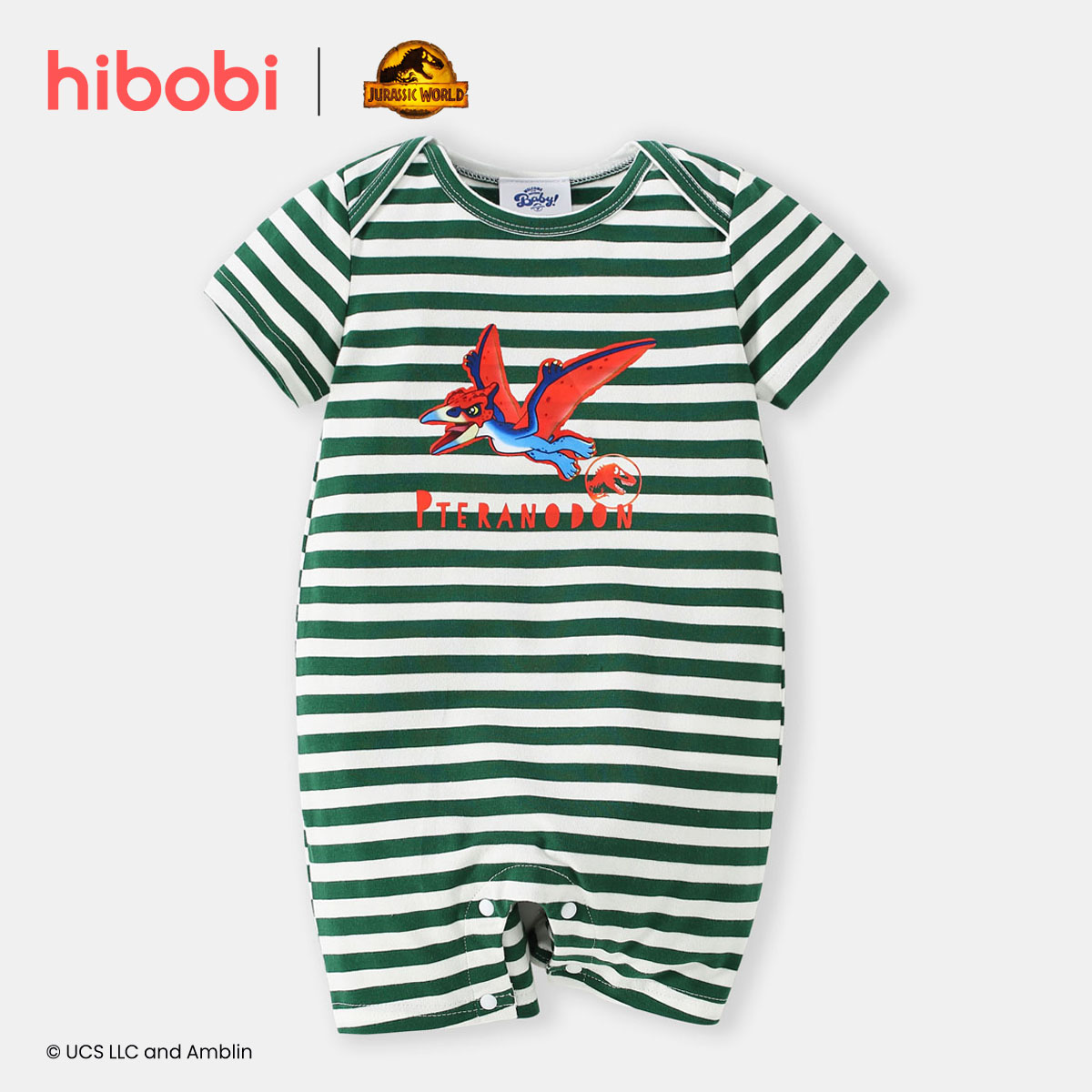 Jurassic World × hibobi baby Dinosaur Print Striped Bodysuit Wholesale