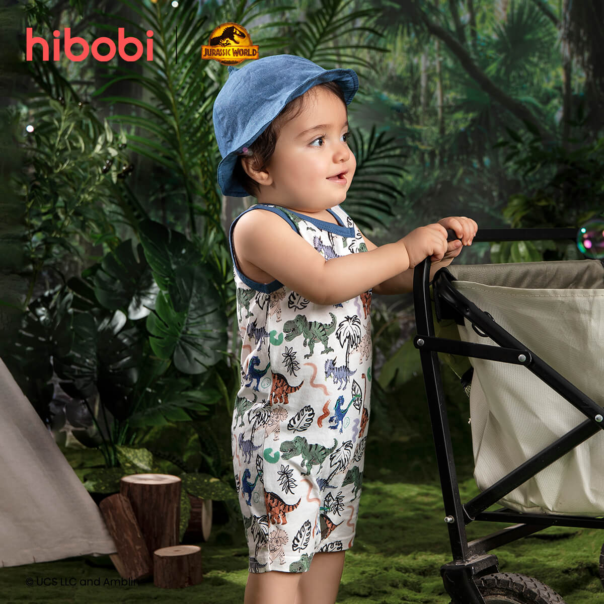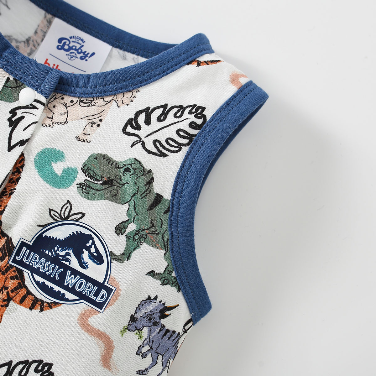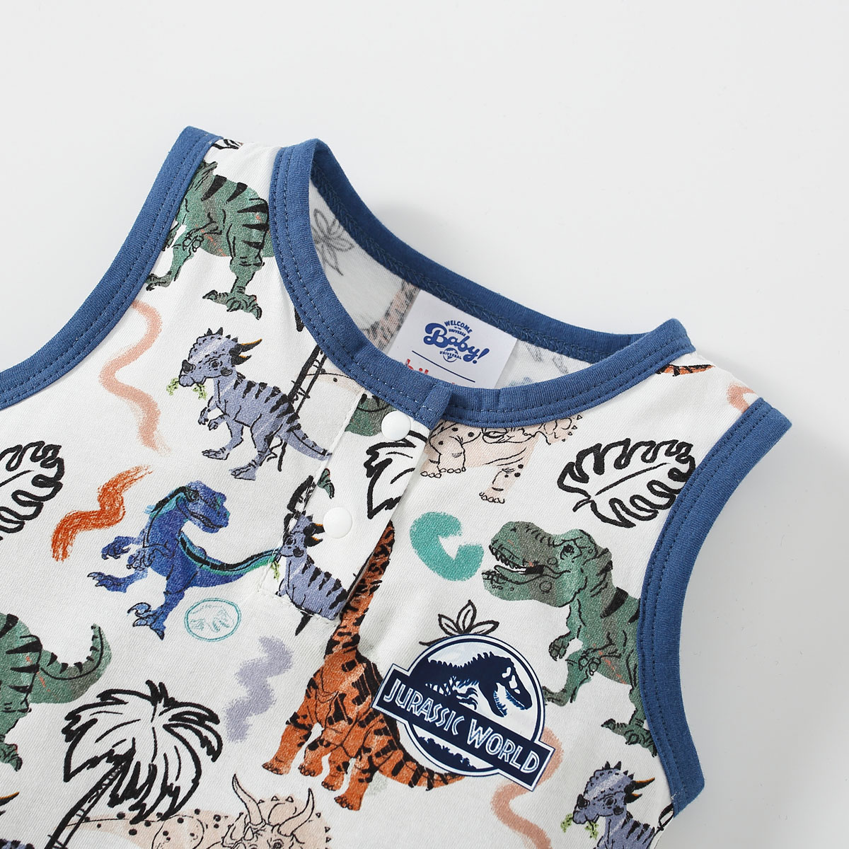 Jurassic World × hibobi baby Dinosaur Print White & Blue Sleeveless Bodysuit Wholesale