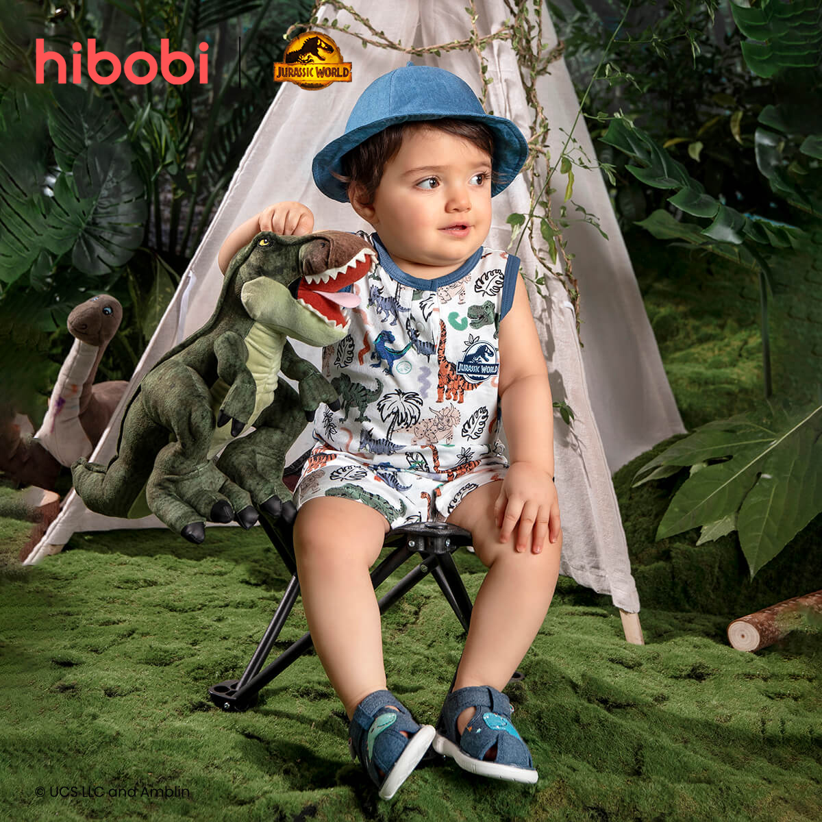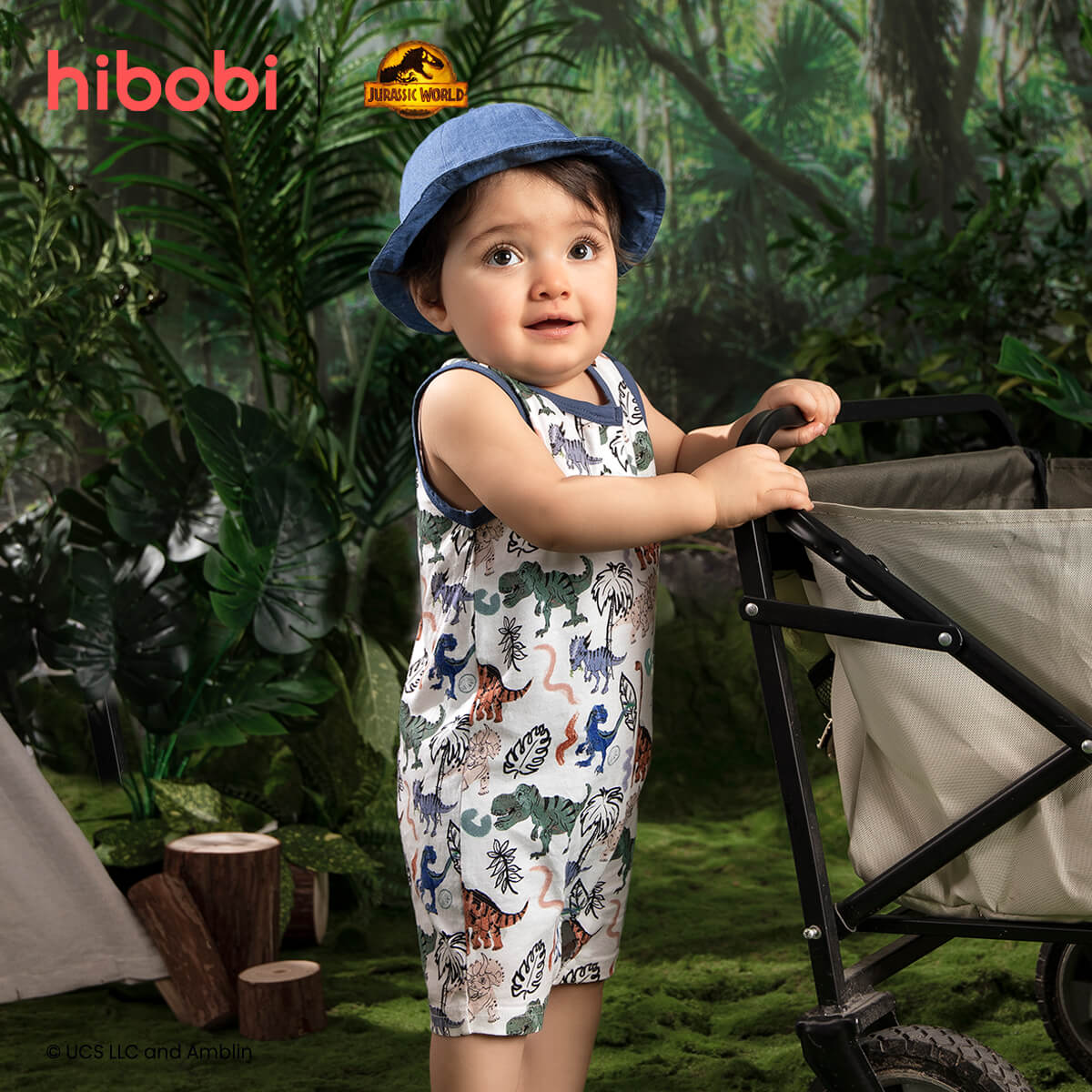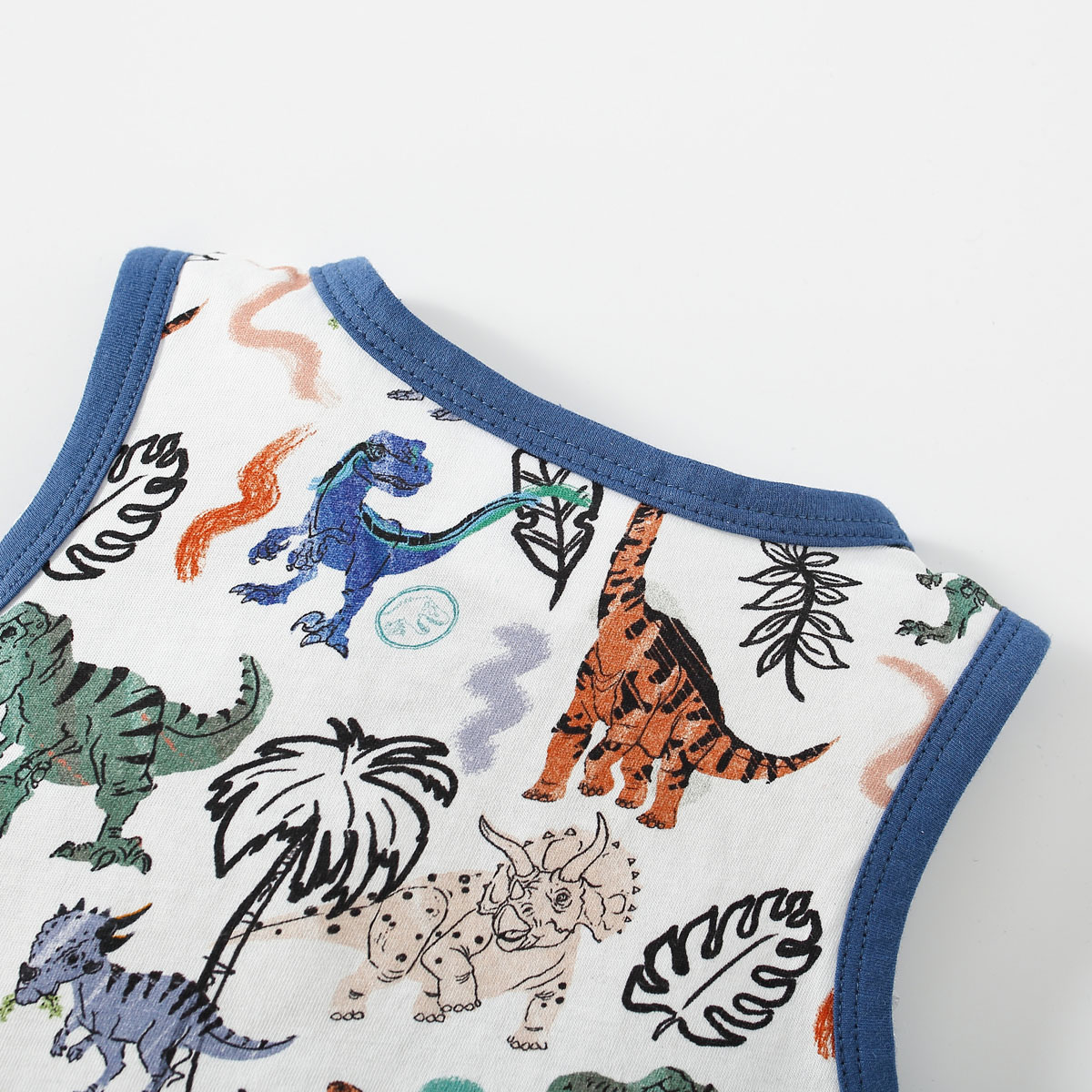 Jurassic World × hibobi baby Dinosaur Print White & Blue Sleeveless Bodysuit Wholesale