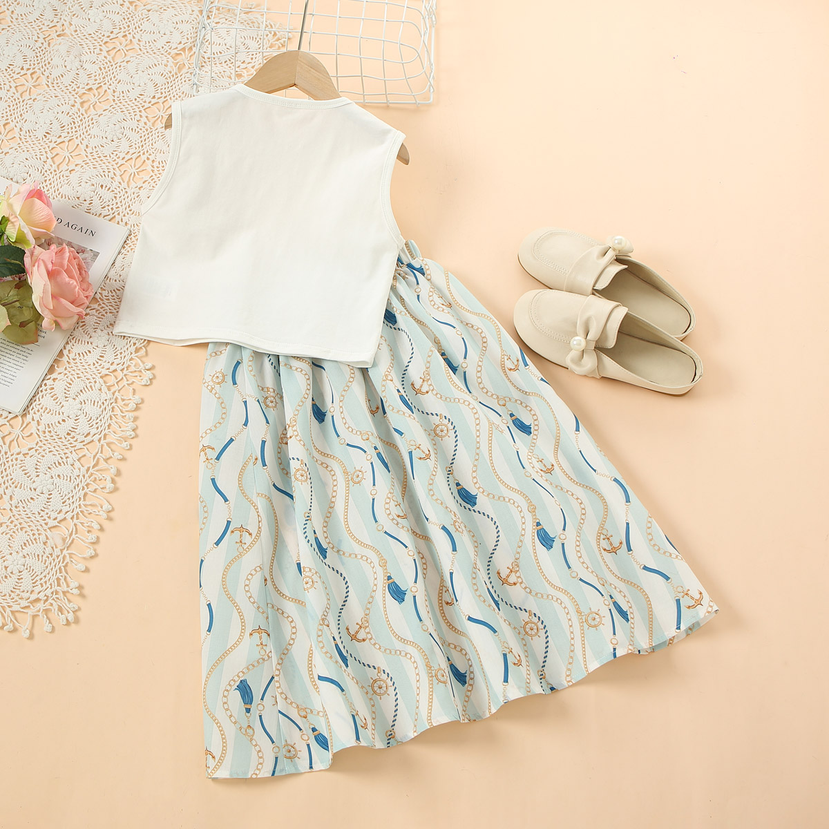 Kid Girl Baroque Print Dress Set Wholesale