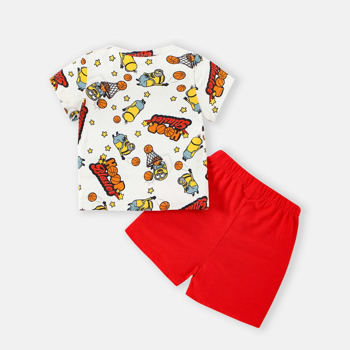 Minions × hibobi Boy Baby Printed Red Shorts Suit Wholesale