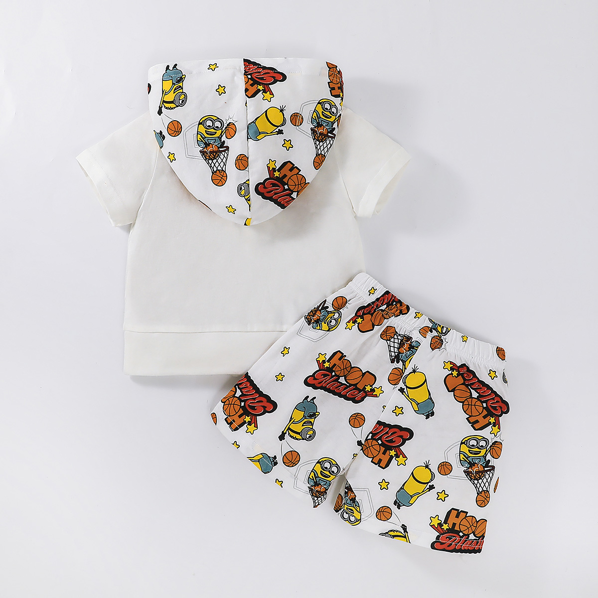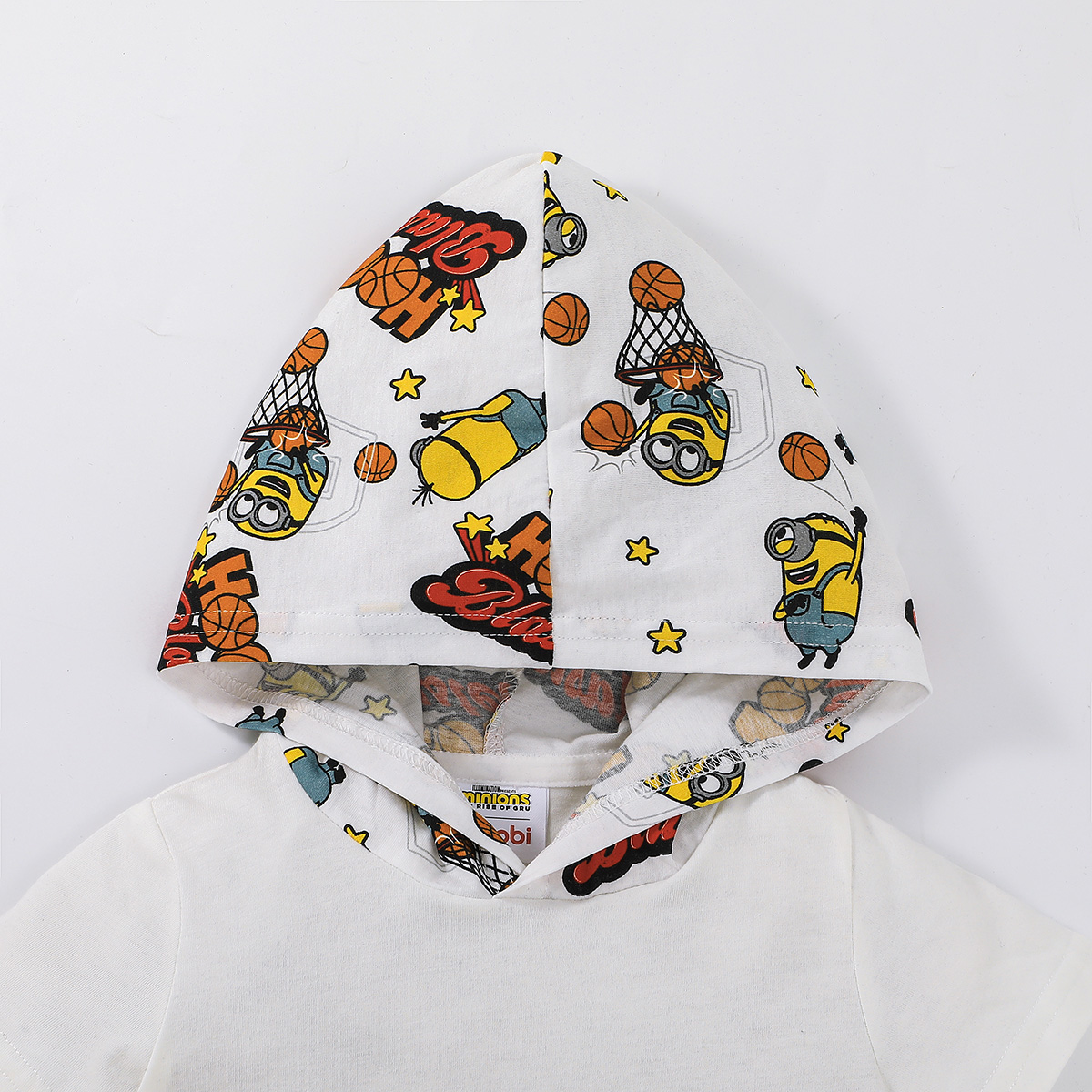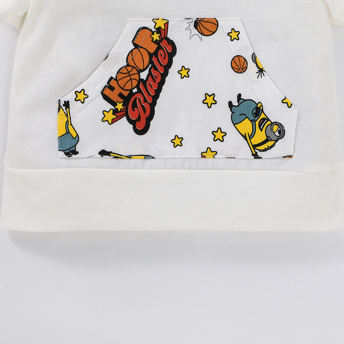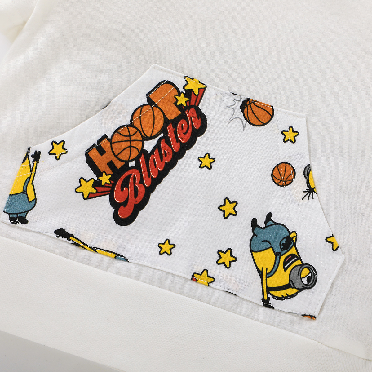 Minions × toddler boy Printed White Patchwork Hooded Pocket Suit Wholesale