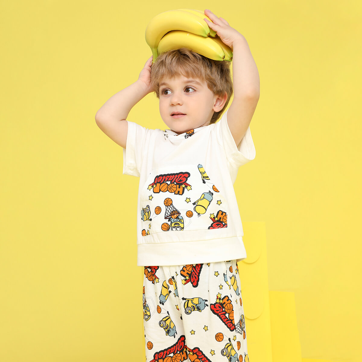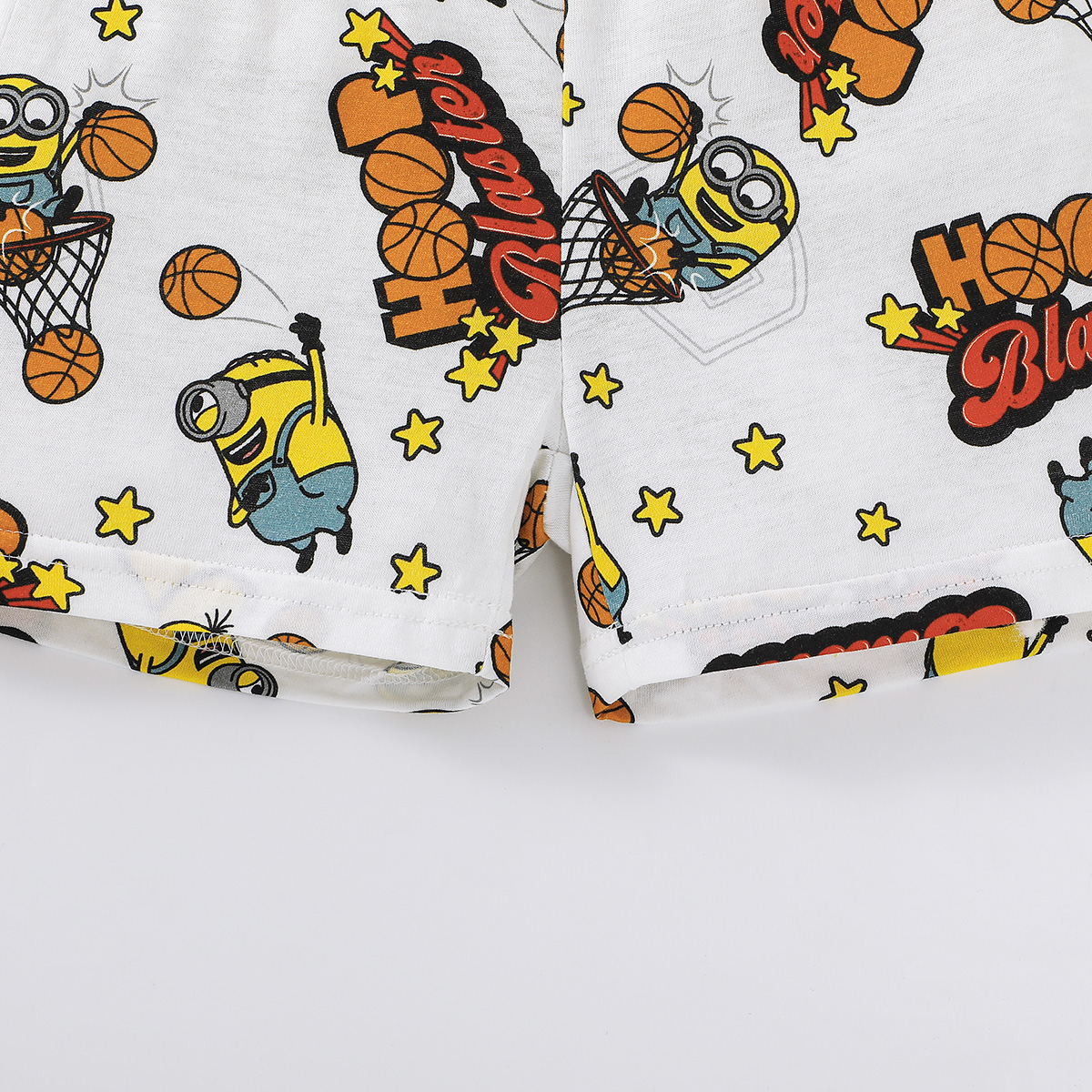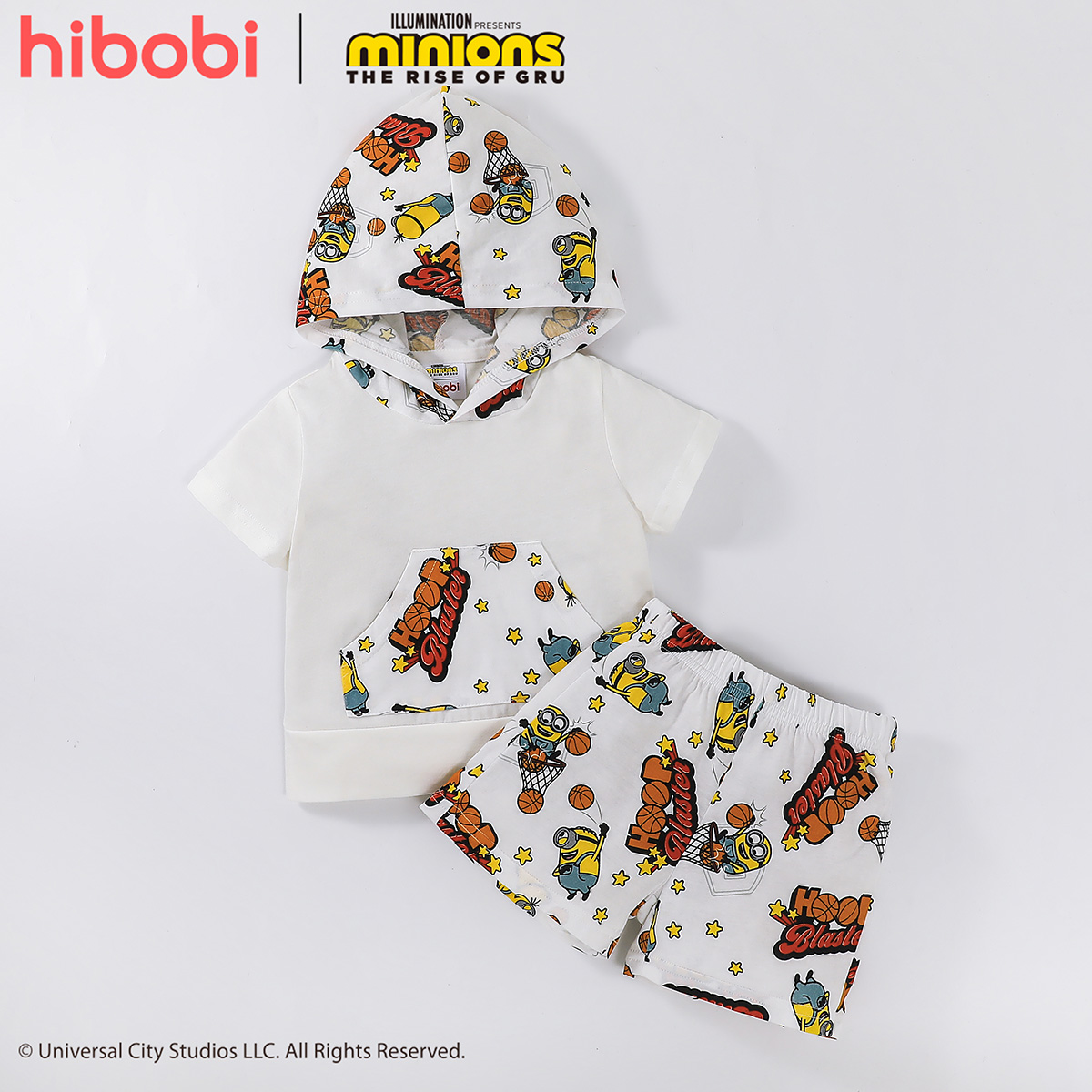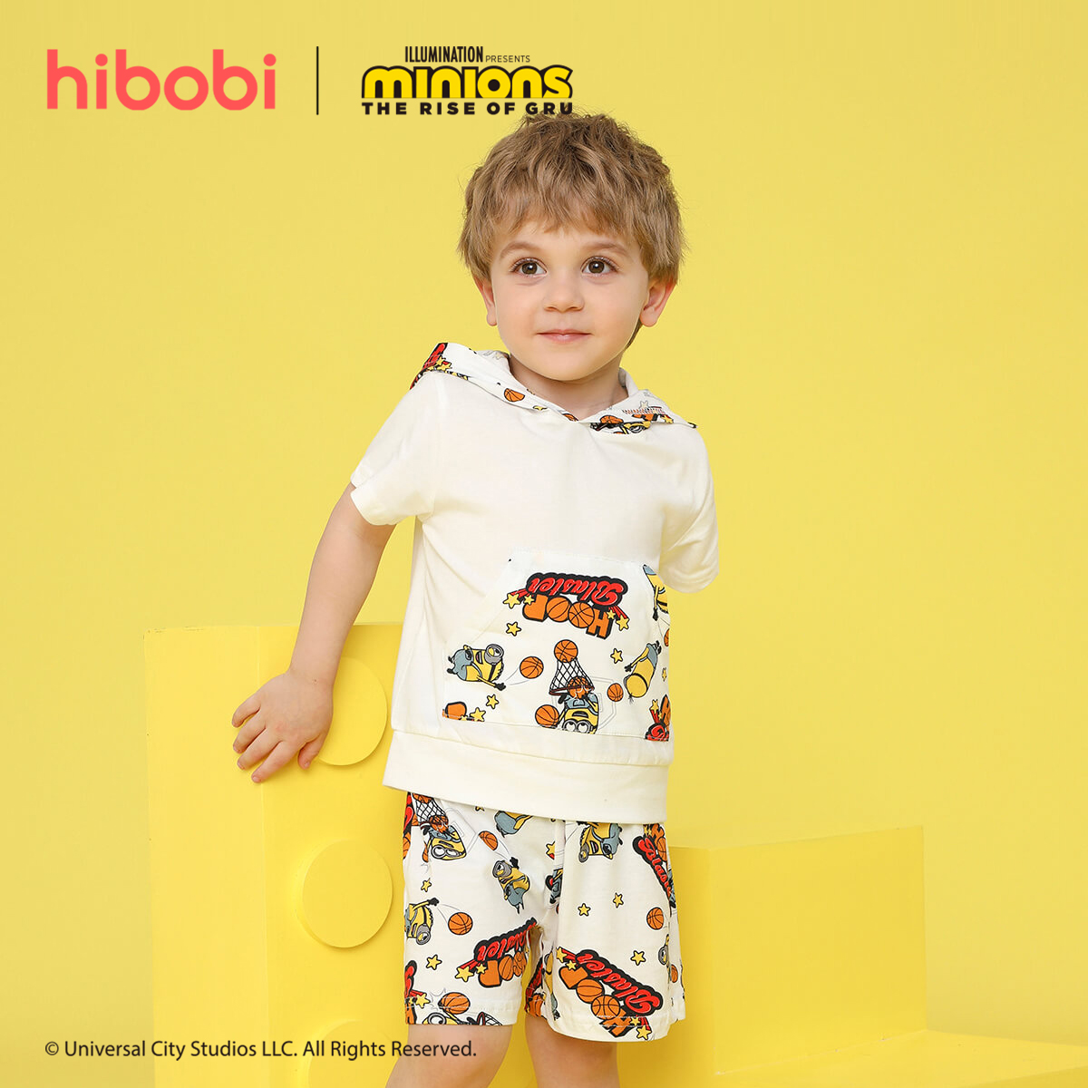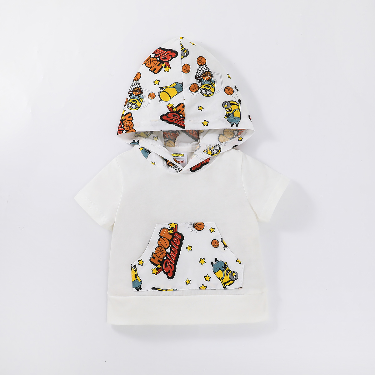 Minions × toddler boy Printed White Patchwork Hooded Pocket Suit Wholesale