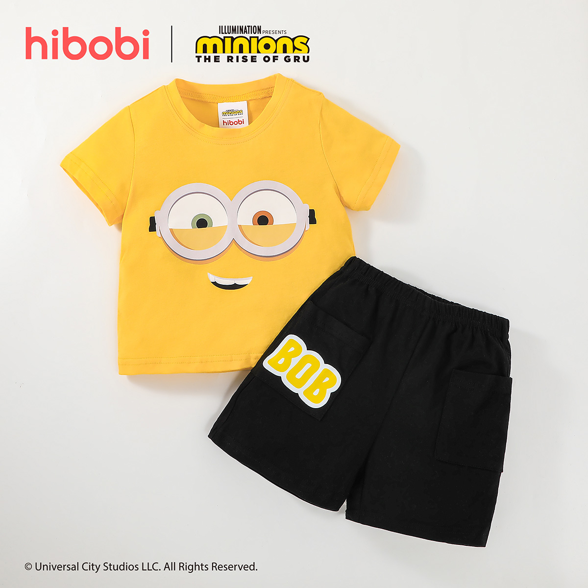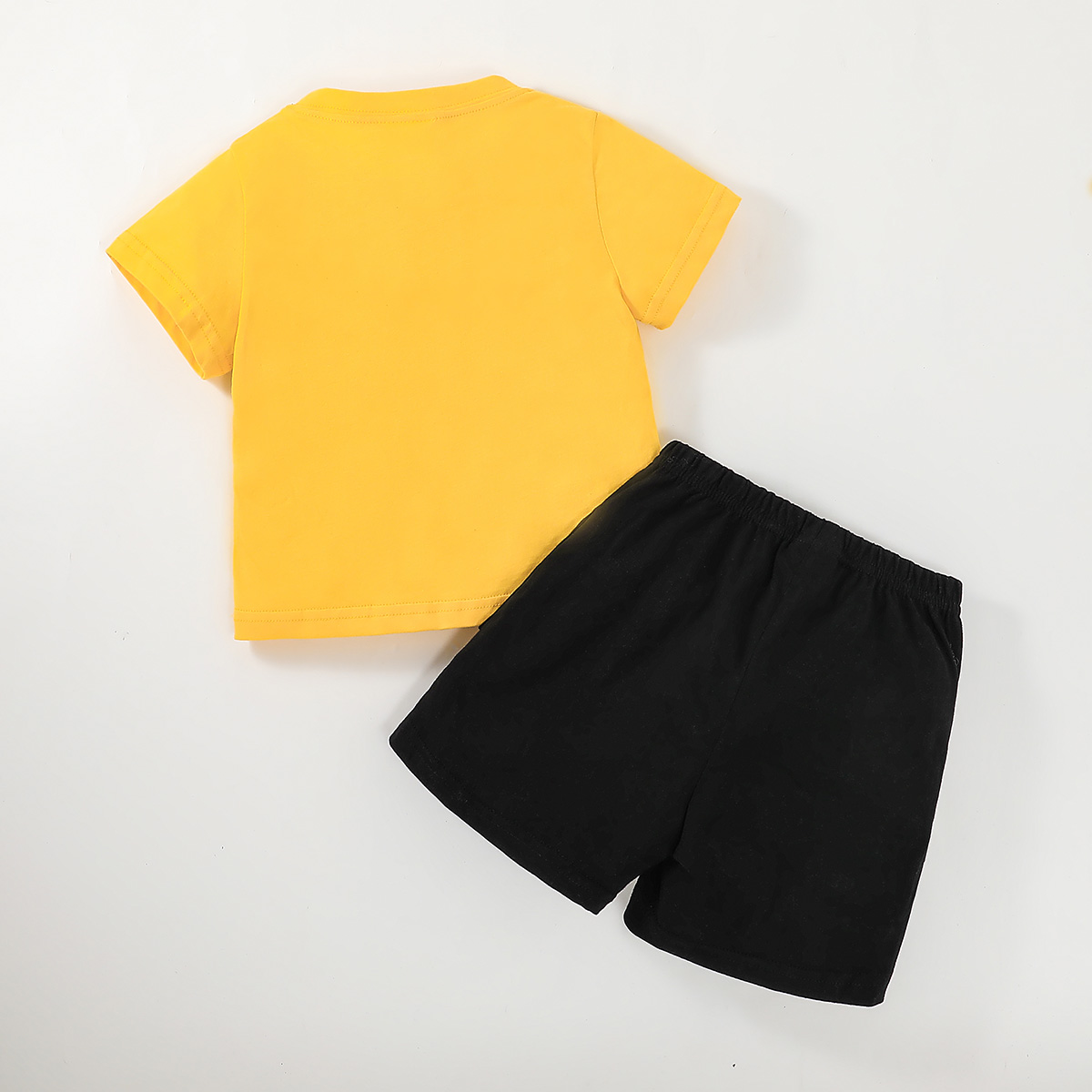 Minions × toddler boy Printed Yellow Top Black Trousers Suit Wholesale