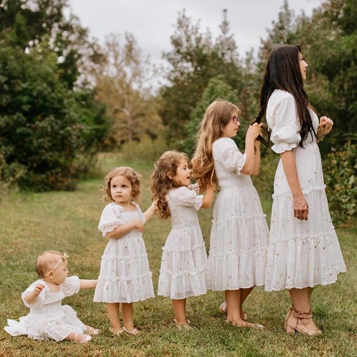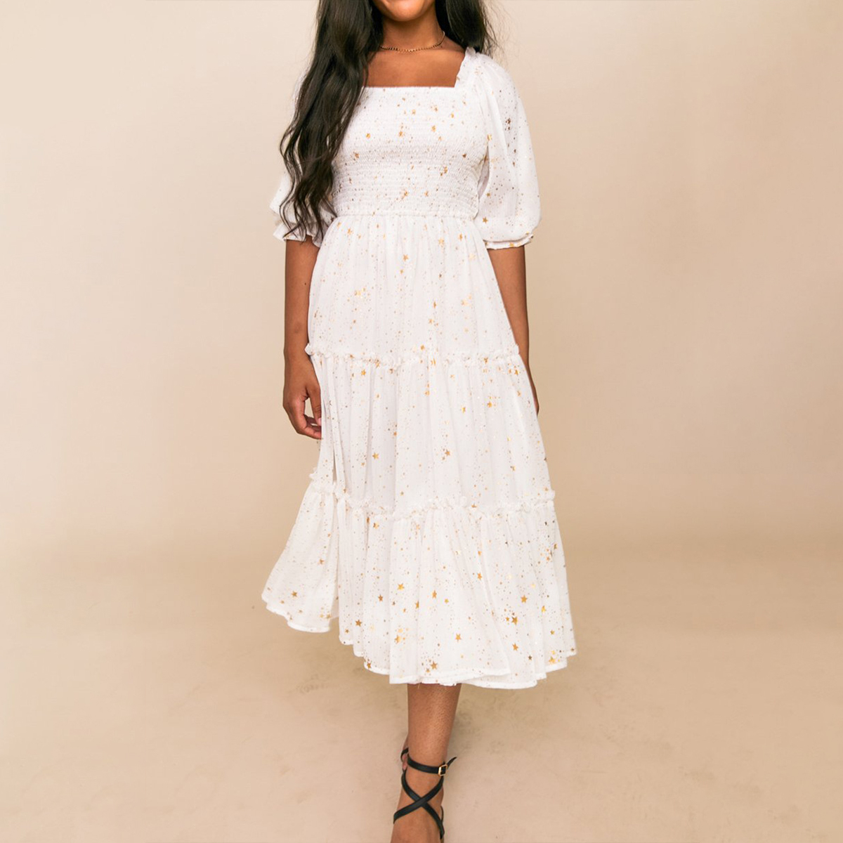 Sweet Star Print Puff Sleeve Dress for Mom and Me Wholesale