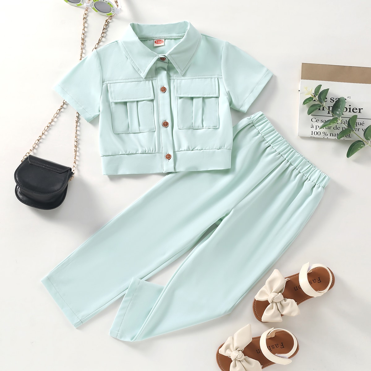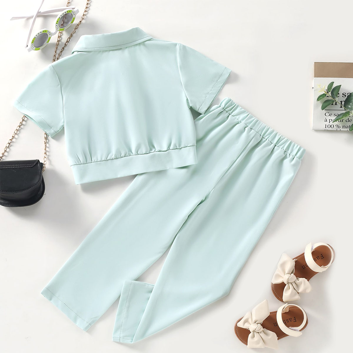 Toddler Girl Casual Solid Color Shirt & Trousers Wholesale