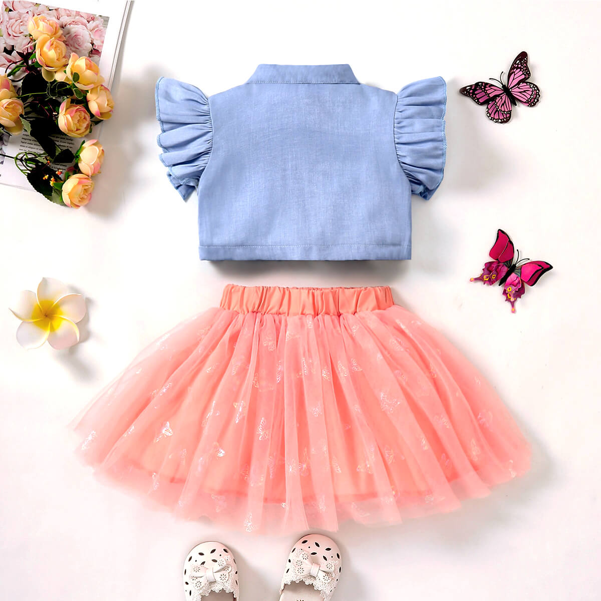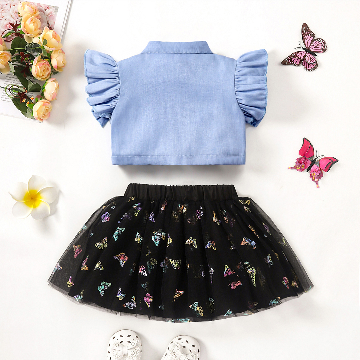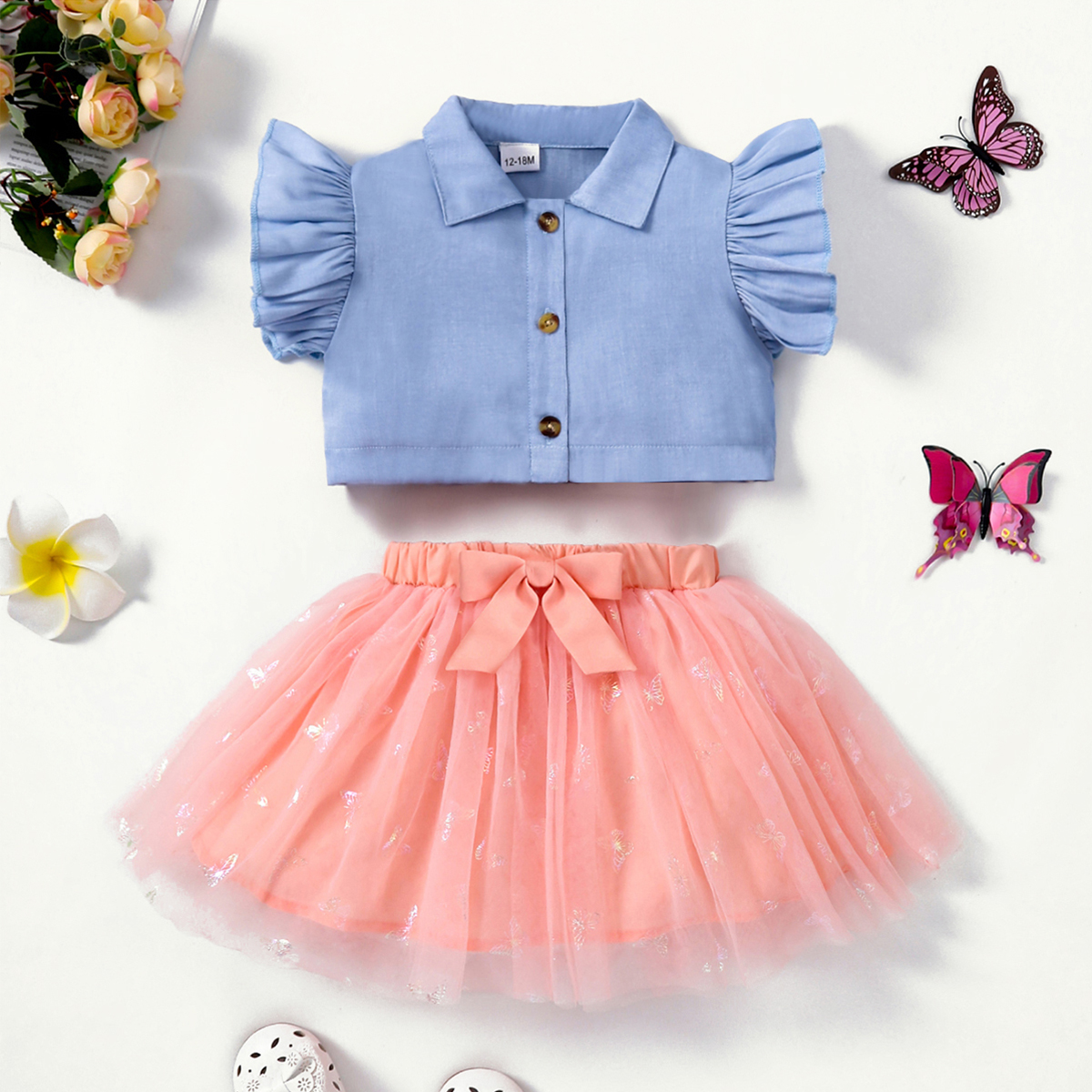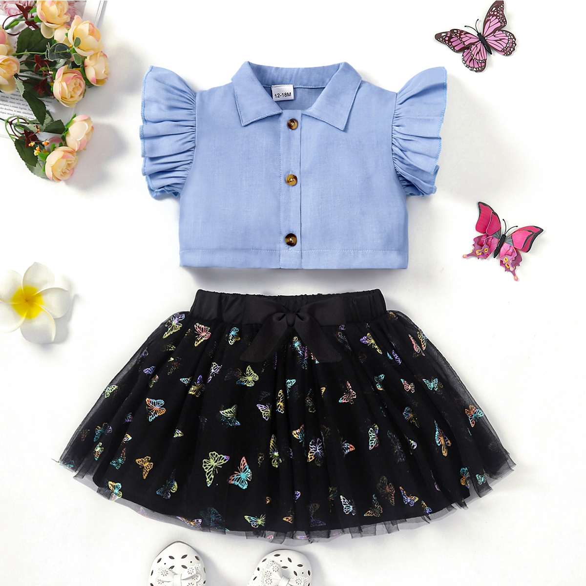 Toddler Girl Sweet Butterfly Bow Knot Decor Shirt & Skirt Wholesale