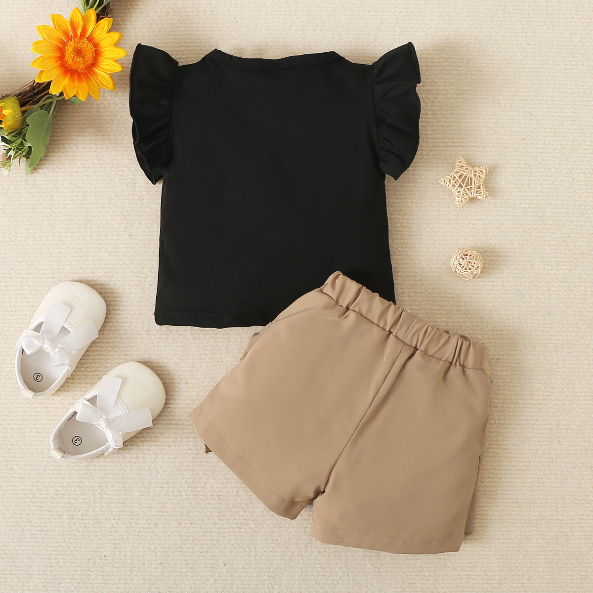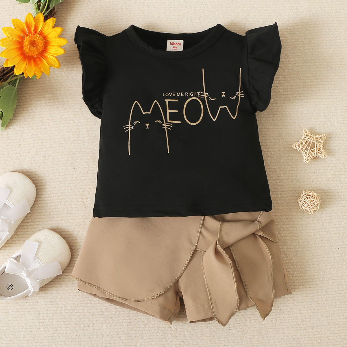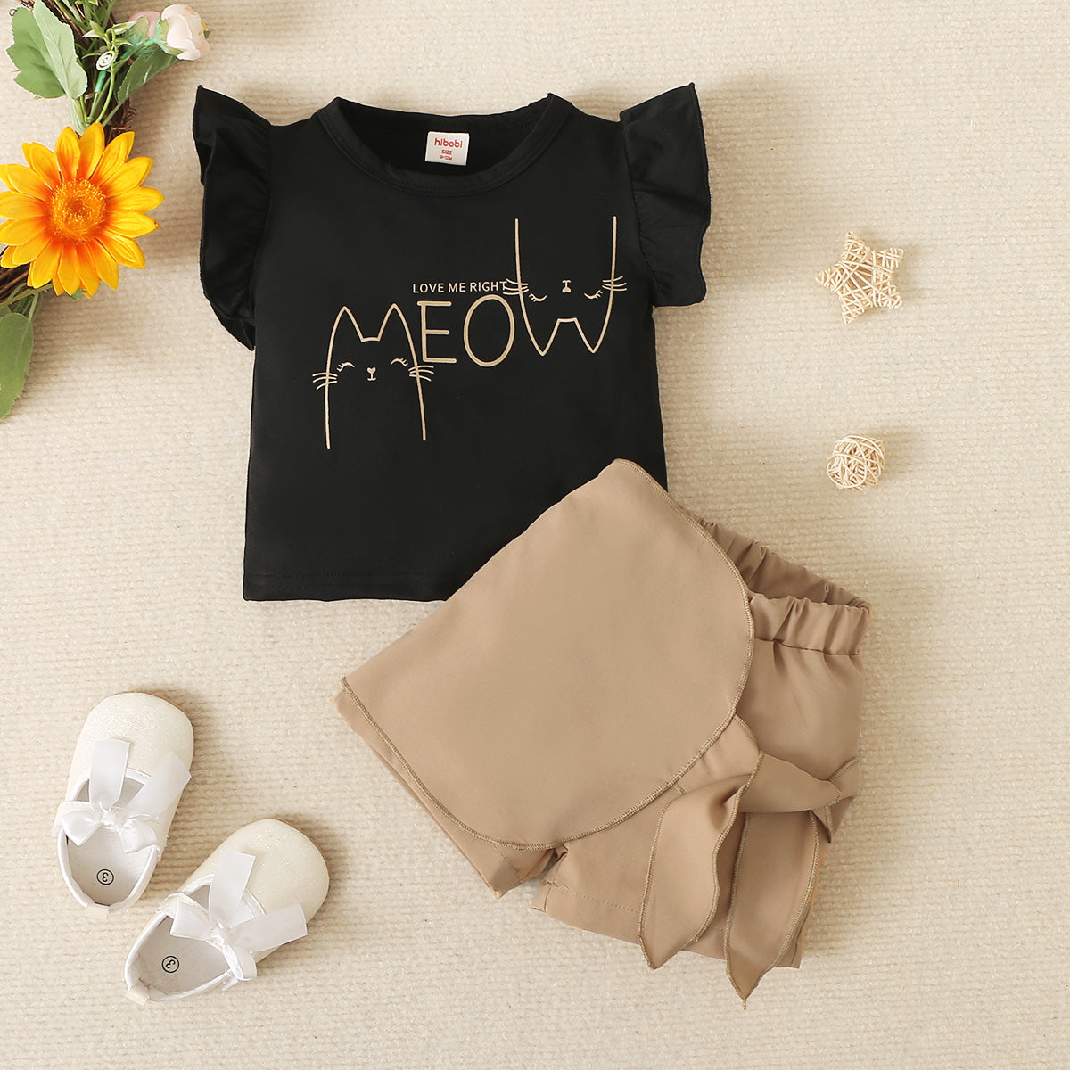 Toddler Girls Letter Solid Cat Top & Shorts Wholesale