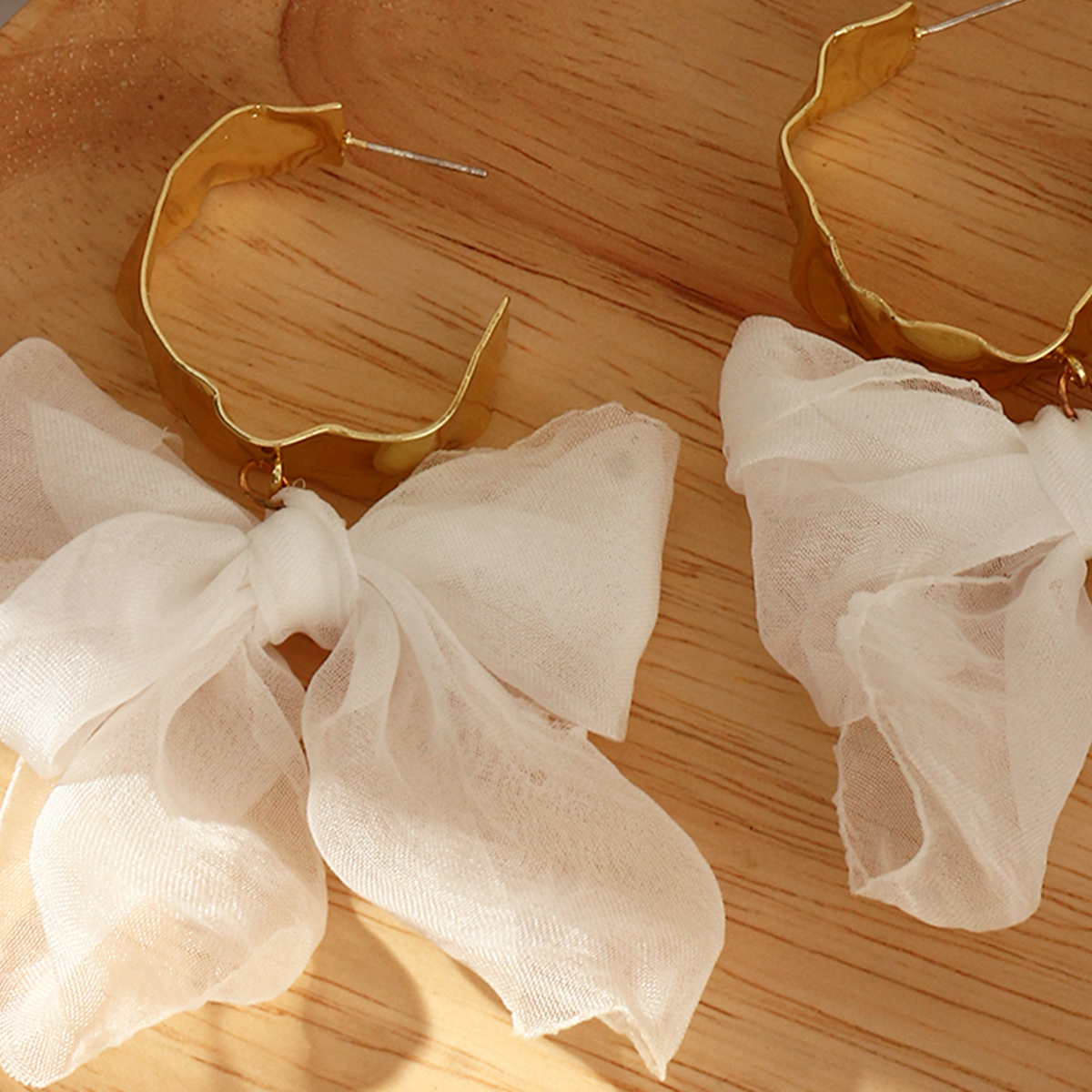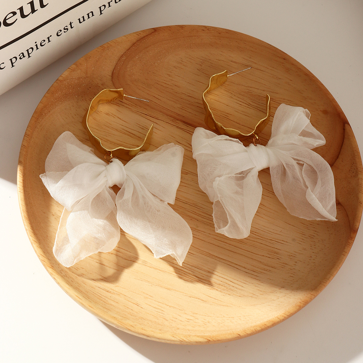 Women 2-Piece Mesh Bowknot Earring Wholesale