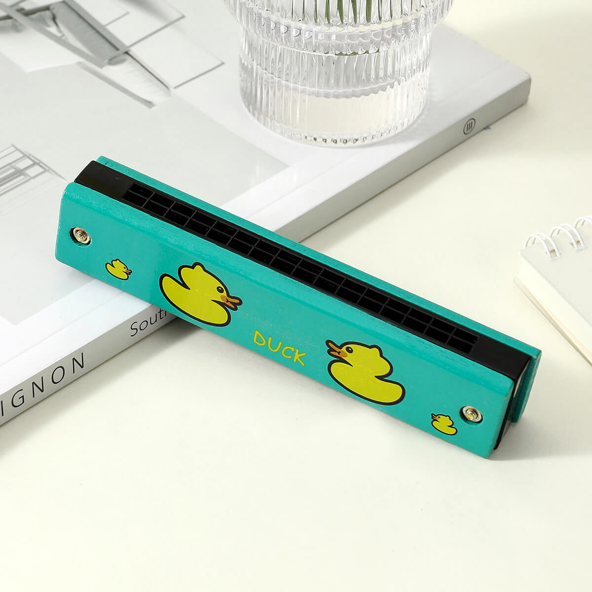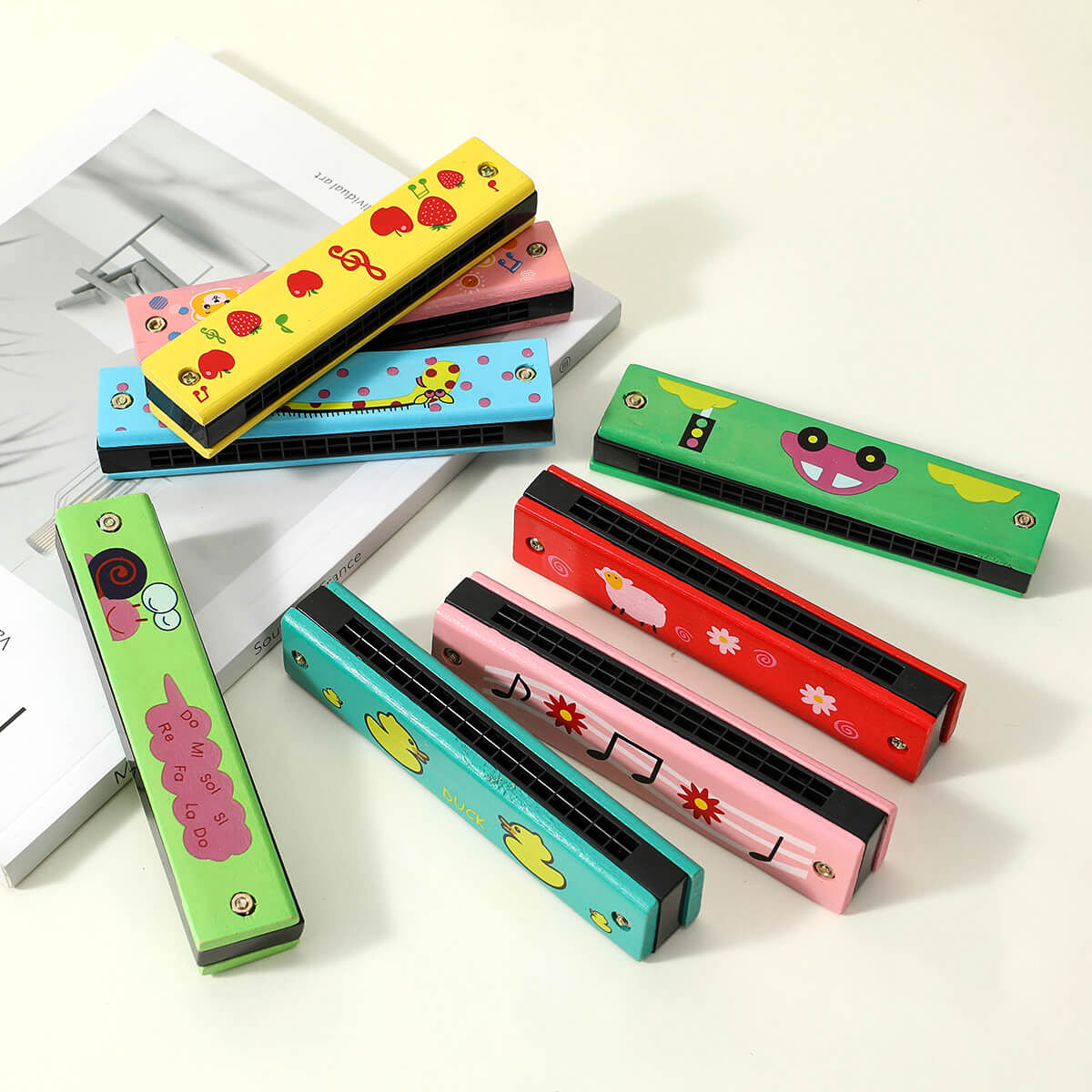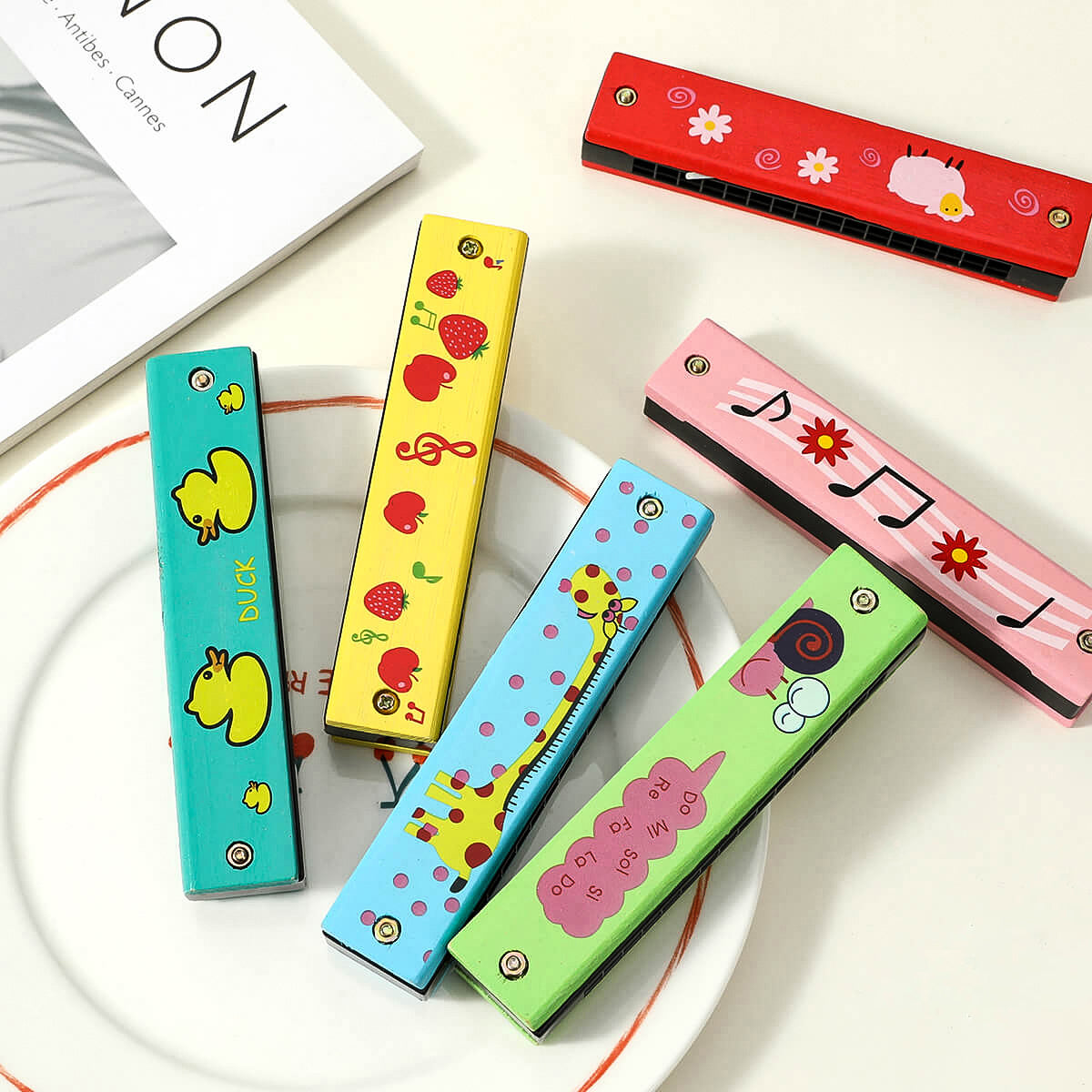 Wooden cartoon 16-hole double-row harmonica children's musical instruments toys Wholesale