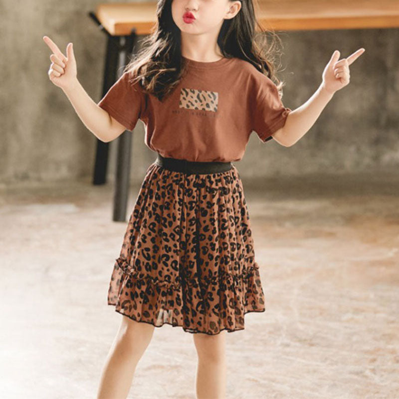 Girl Leopard Pattern Dress Set Wholesale