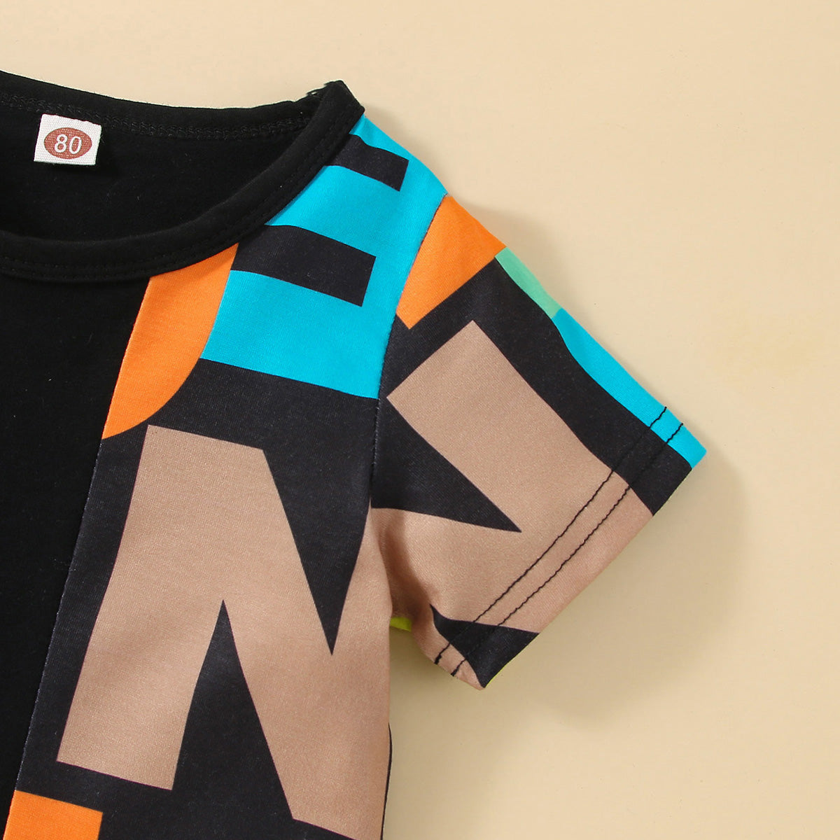 Baby Boy 2 Pieces Asymmetrical Letter Pattern T-Shirt & Shorts Wholesale
