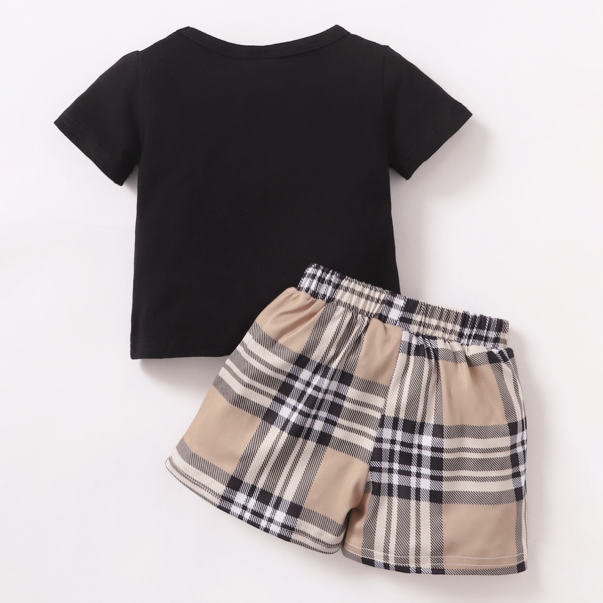 Baby Boy 2 Pieces Letter Pattern T-shirt & Plaid Shorts Wholesale