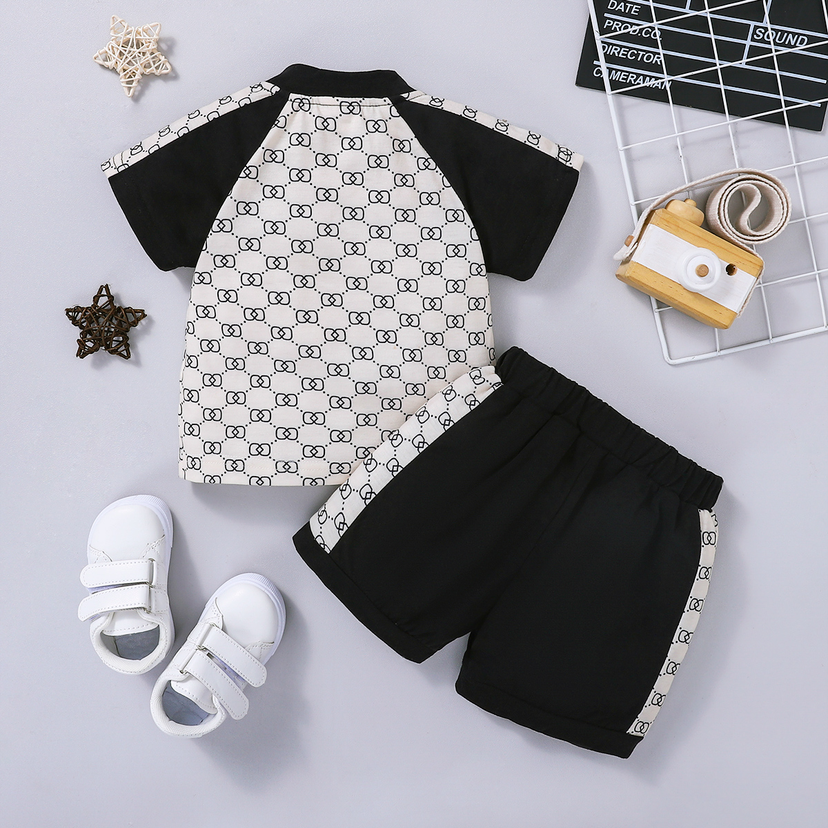 Baby Boy Color-block Monogram Pattern T-Shirt & Shorts Wholesale