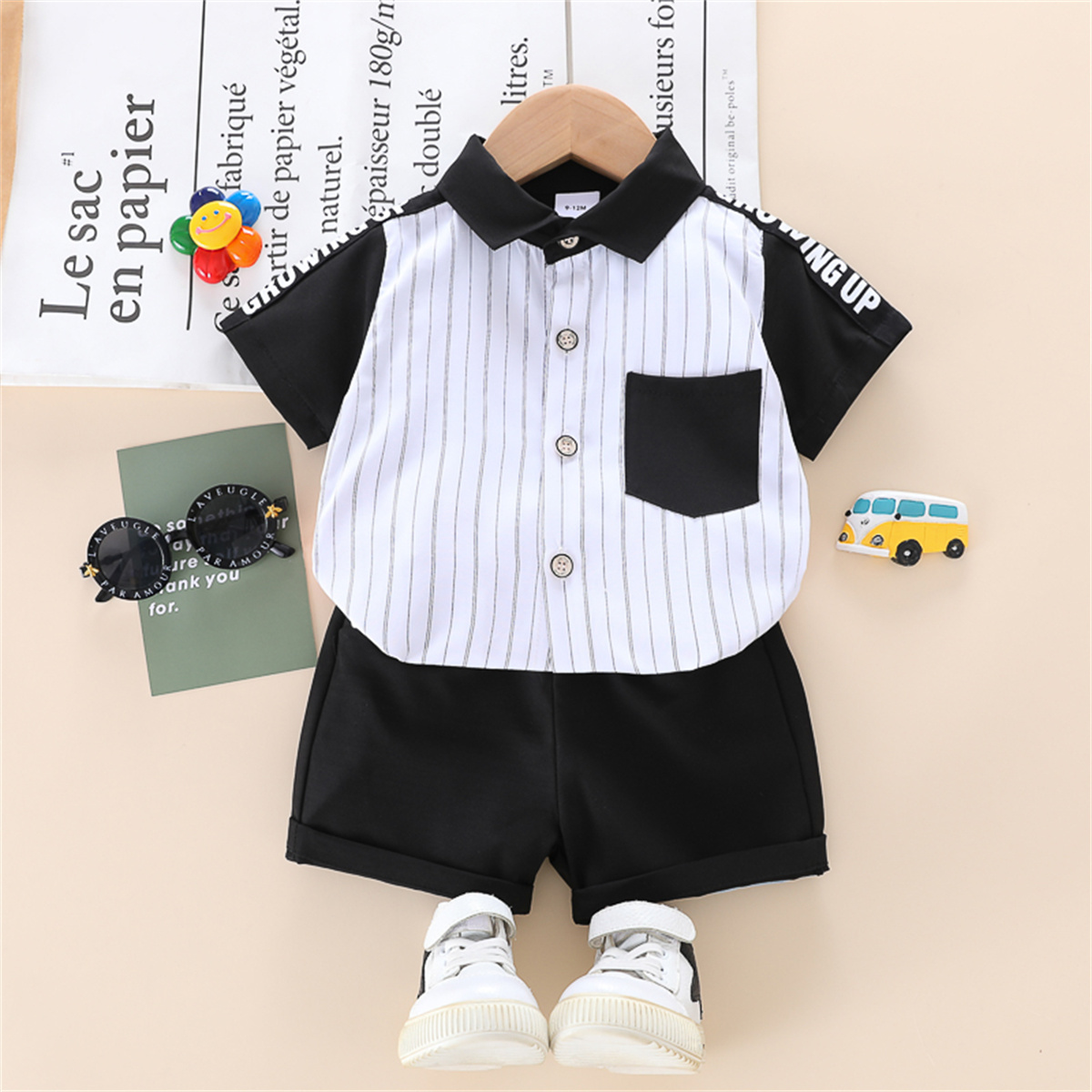 Baby Boy Color-block Shirt And Solid Colour Shorts Wholesale