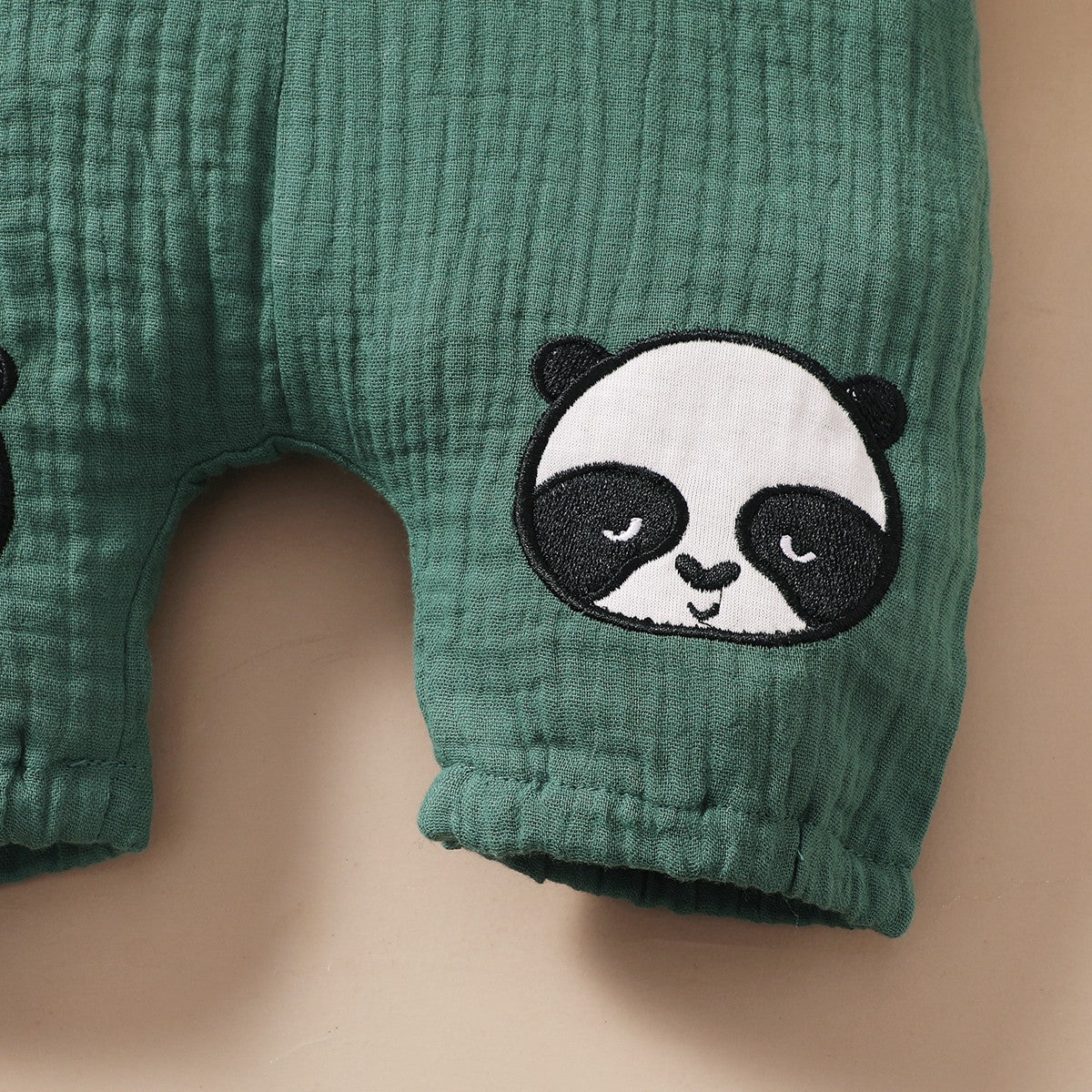 Baby Boy Cute Stripes Top And Panda Applique Overalls Wholesale
