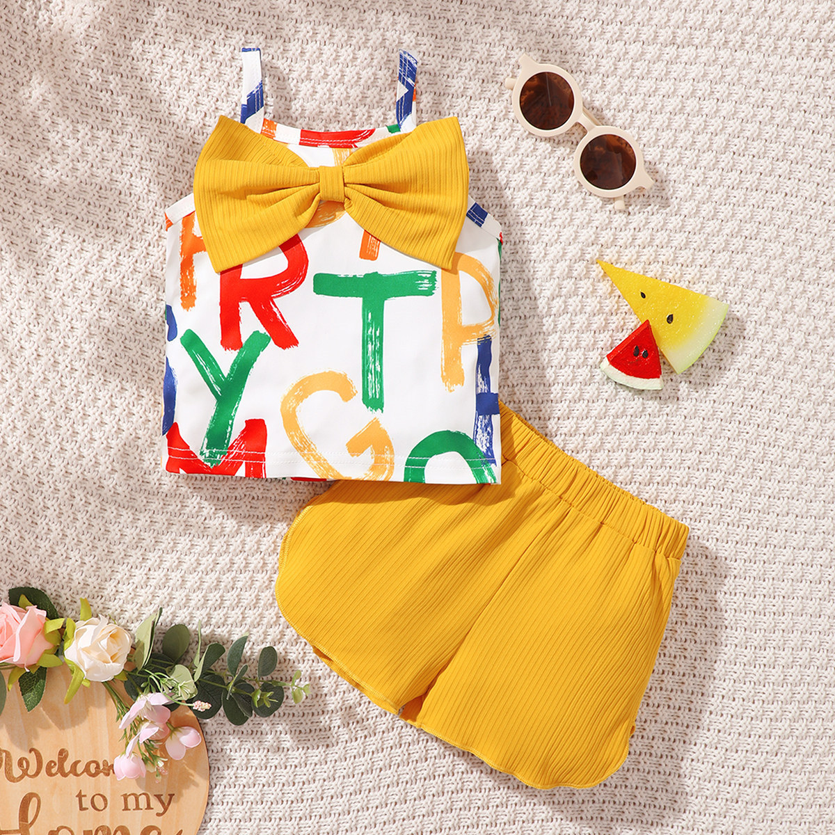 Baby Girl 2 Pieces Bow-knot Letter Pattern Top & Shorts Wholesale