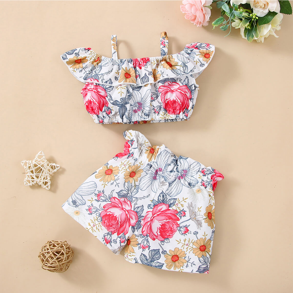 Baby Girl 2 Pieces Floral Pattern Top & Shorts Wholesale