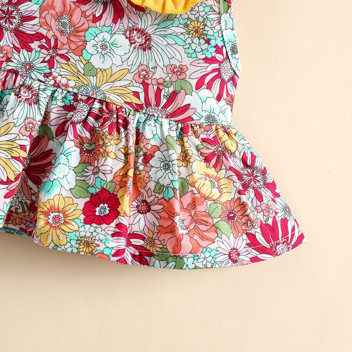 Baby Girl Beautiful Floral Ruffle Collar Top And Patchwork Shorts Wholesale