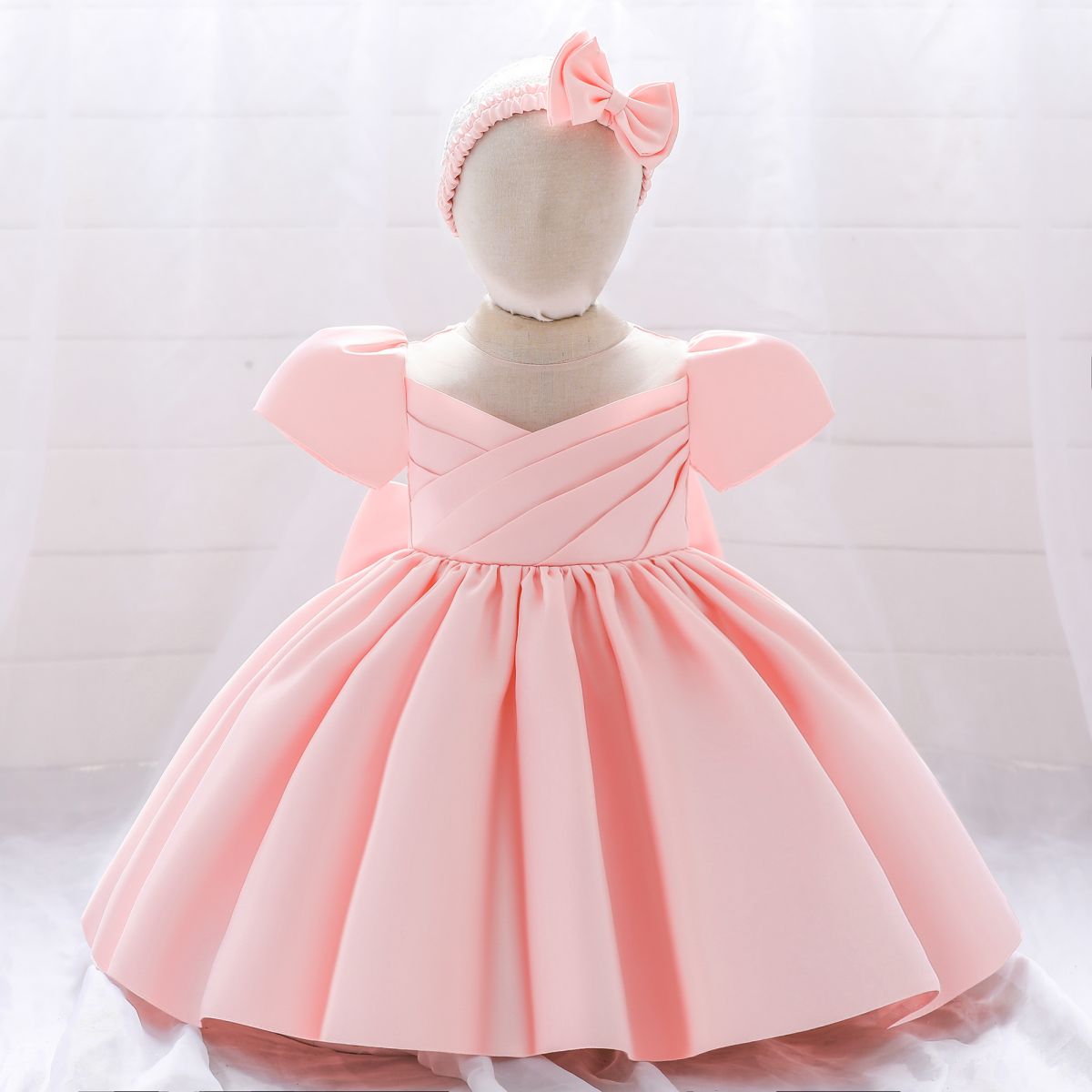 Baby Girl Beautiful Ruffle Solid Colour Formal Dress with Headband Wholesale