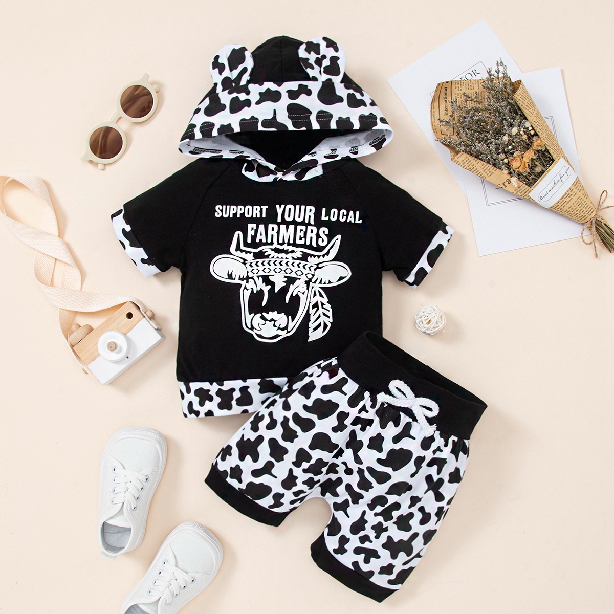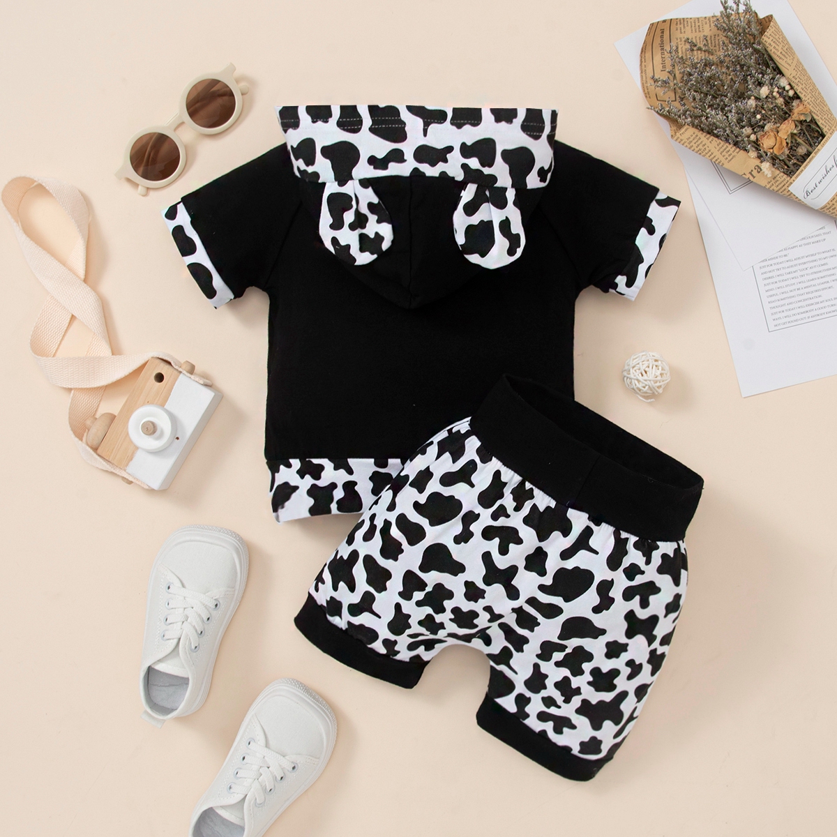 Baby Girl Cute Cattle Print Hooded Top And Short Wholesale