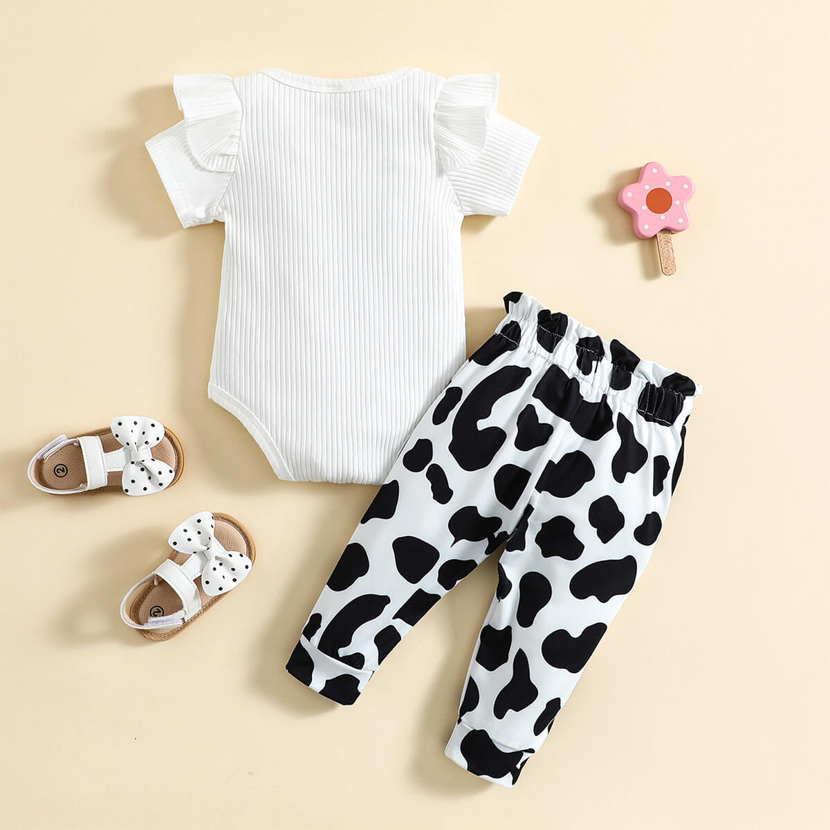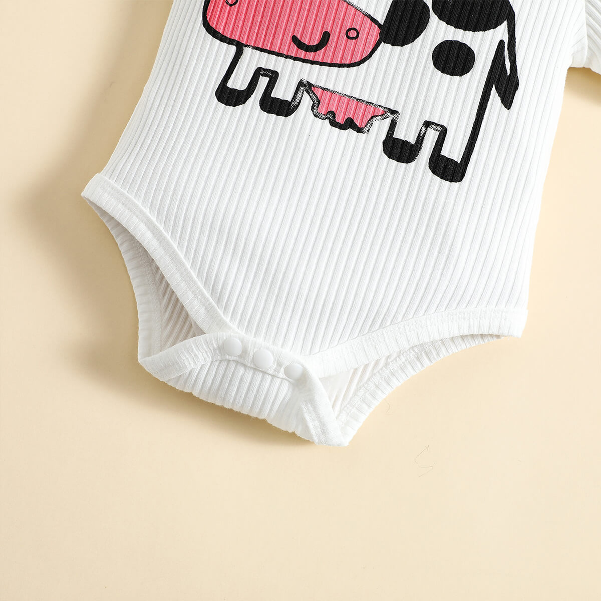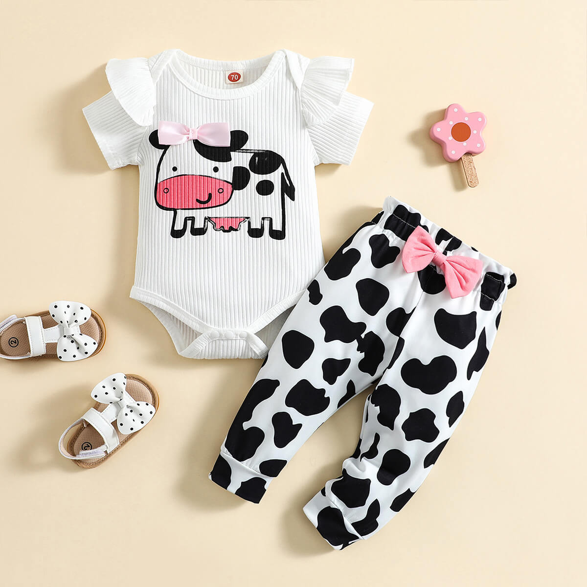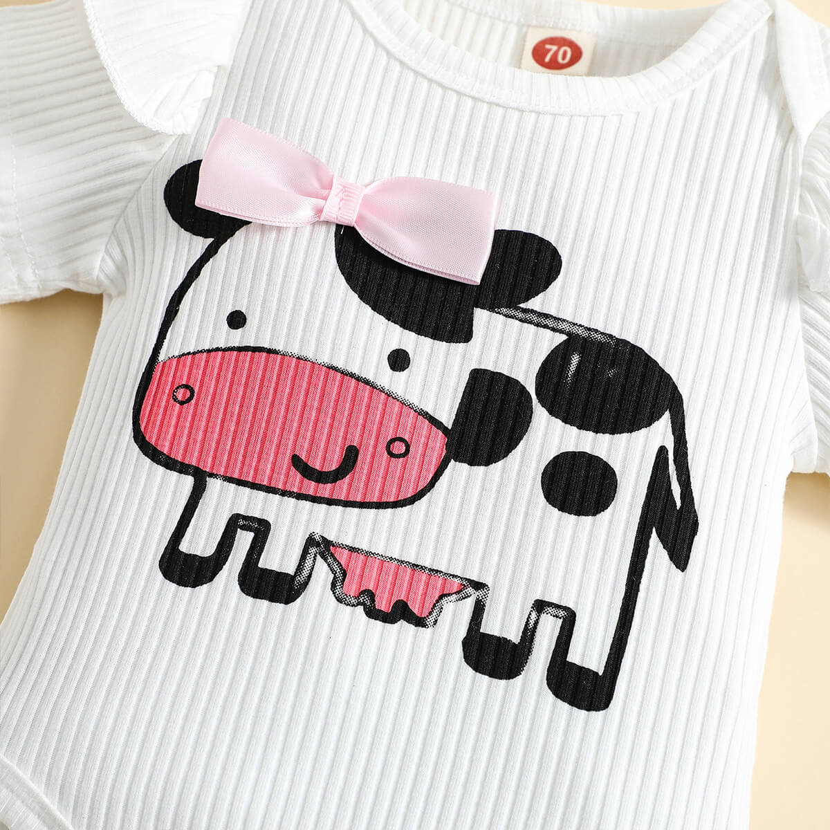 Baby Girl Eid al-Adha Milk Cow Pattern Bodysuit & Bow-knot Pants Wholesale