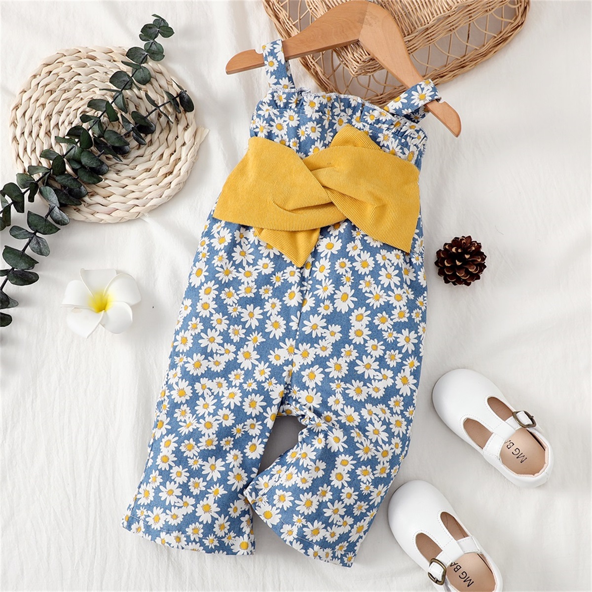 Baby Girl Floral Print Bowknot Overalls Pants Wholesale