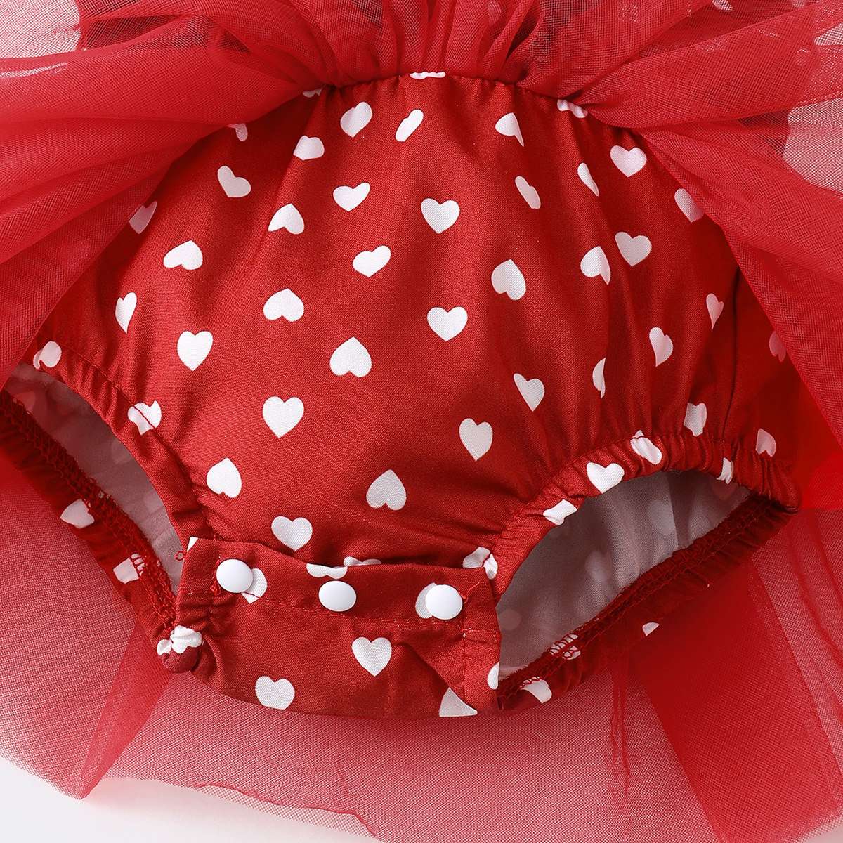 Baby Girl Heart-shaped Pattern Ruffle-sleeve Mesh Bodysuit & Headband Wholesale