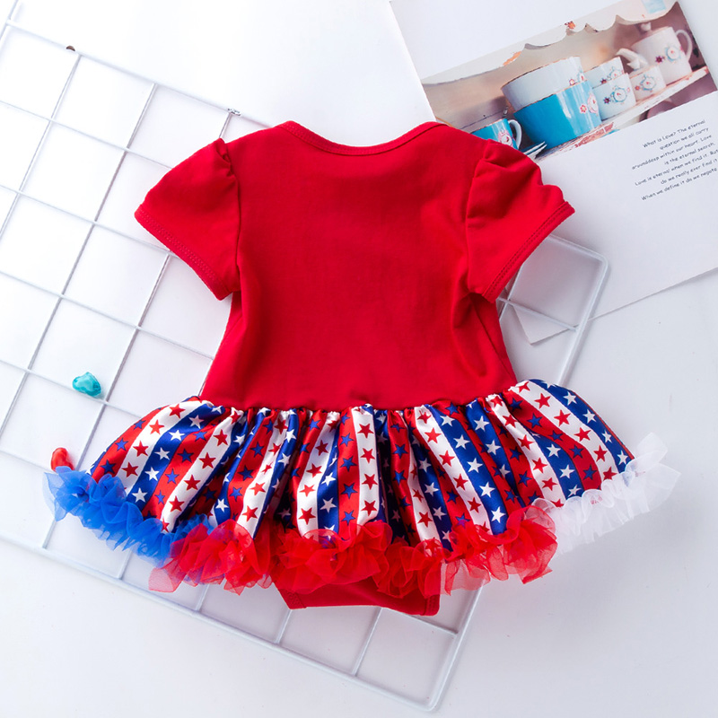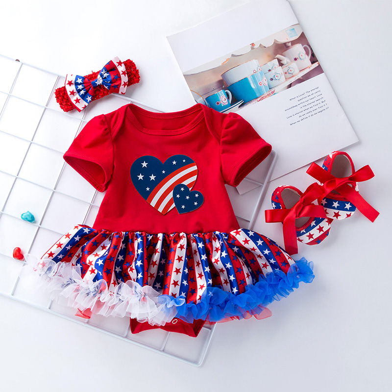 Baby Girl Independence Day Heart-shaped Print Mesh Tutu Hem Bodysuit & Headband Wholesale