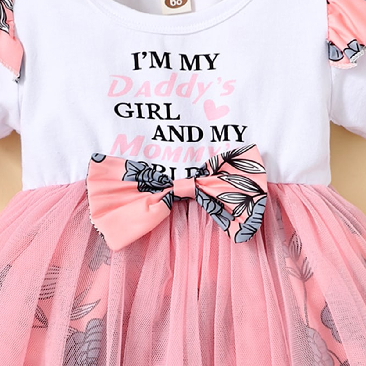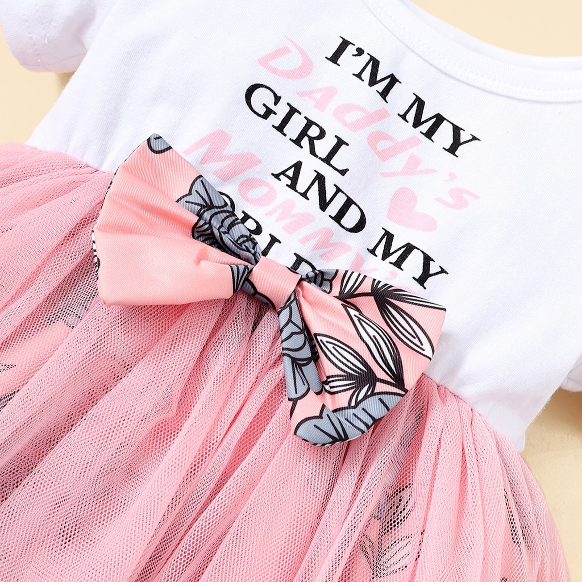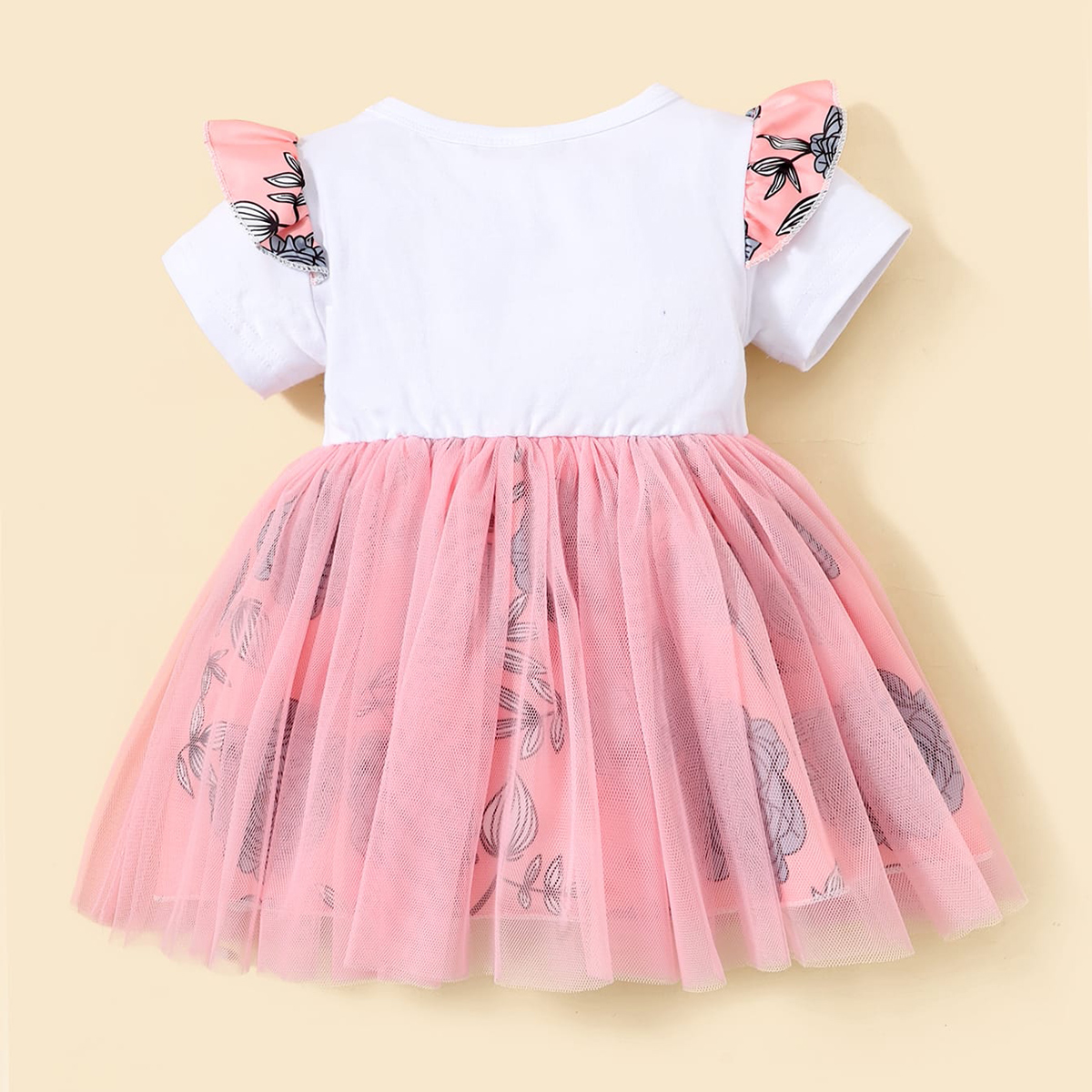 Baby Girl Ruffle-sleeve Bowknot Patchwork Mesh Dress Wholesale