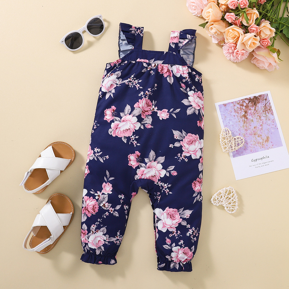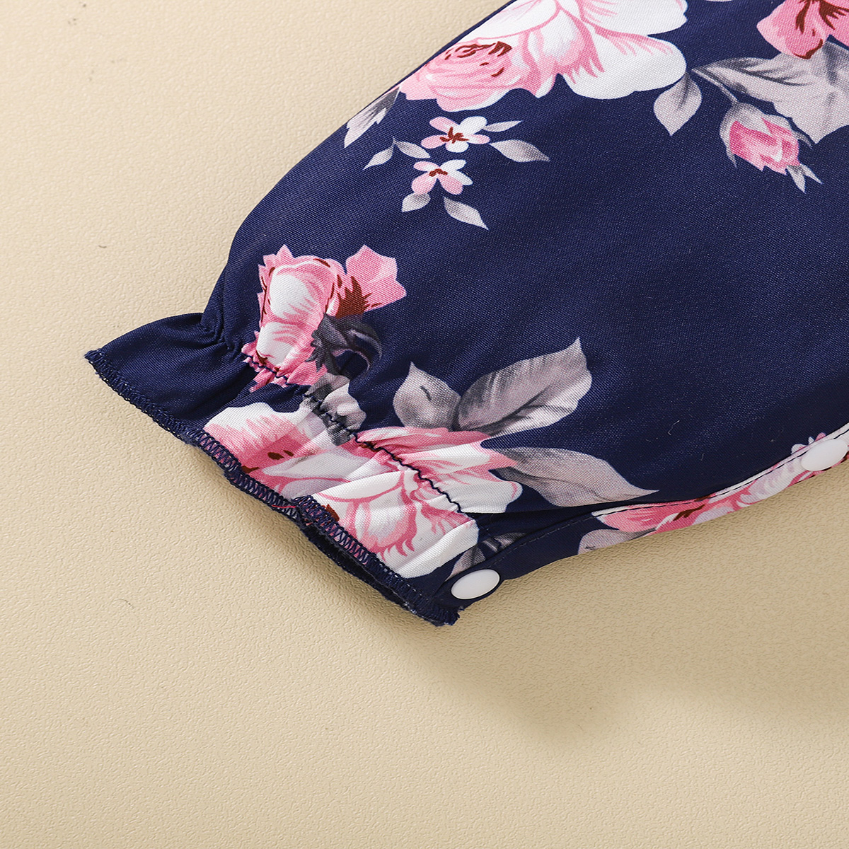 Baby Girl Ruffle-sleeve Floral Print Jumpsuit Wholesale