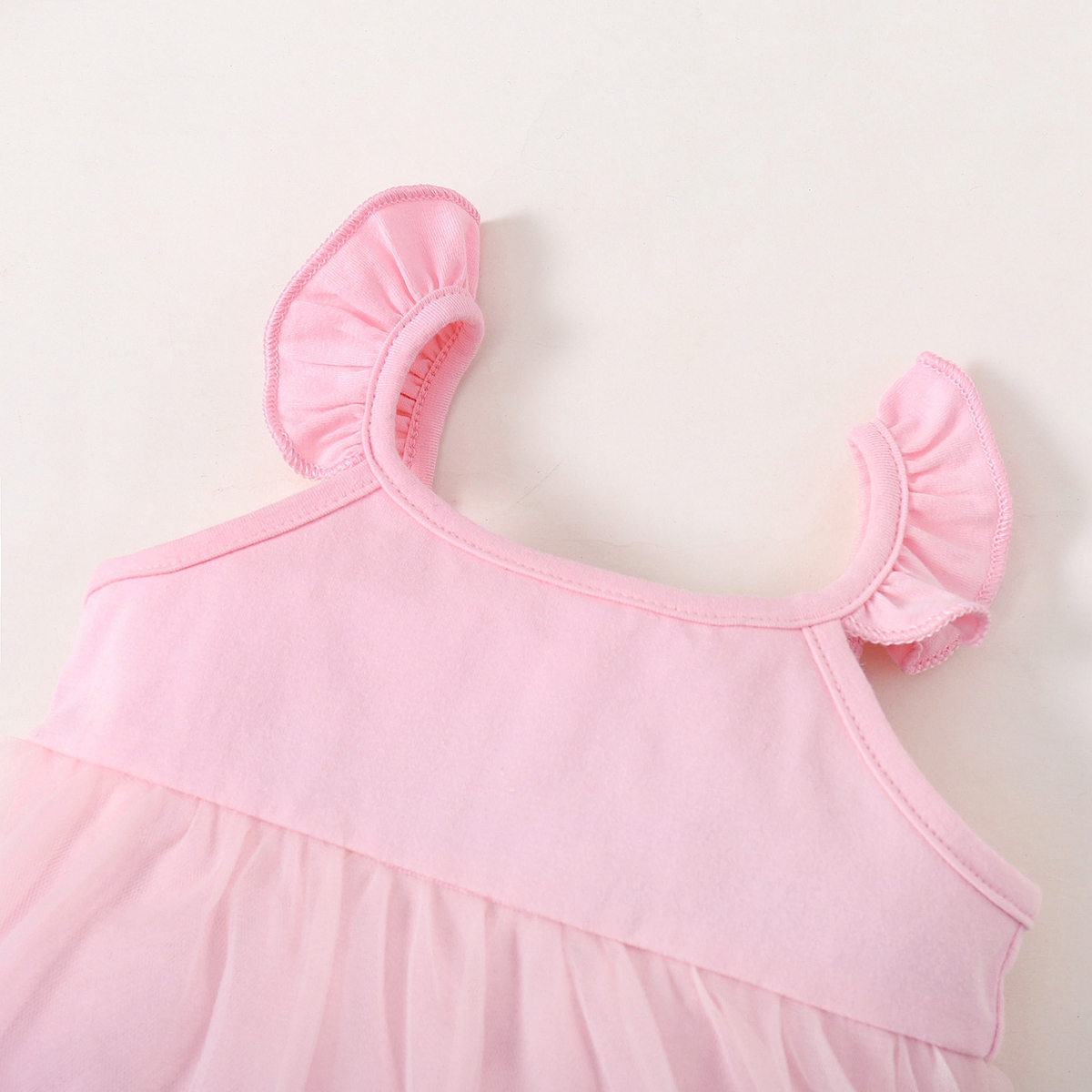 Baby Girl Sweet Sling Solid Colour Mesh Bodysuit with Headband Wholesale