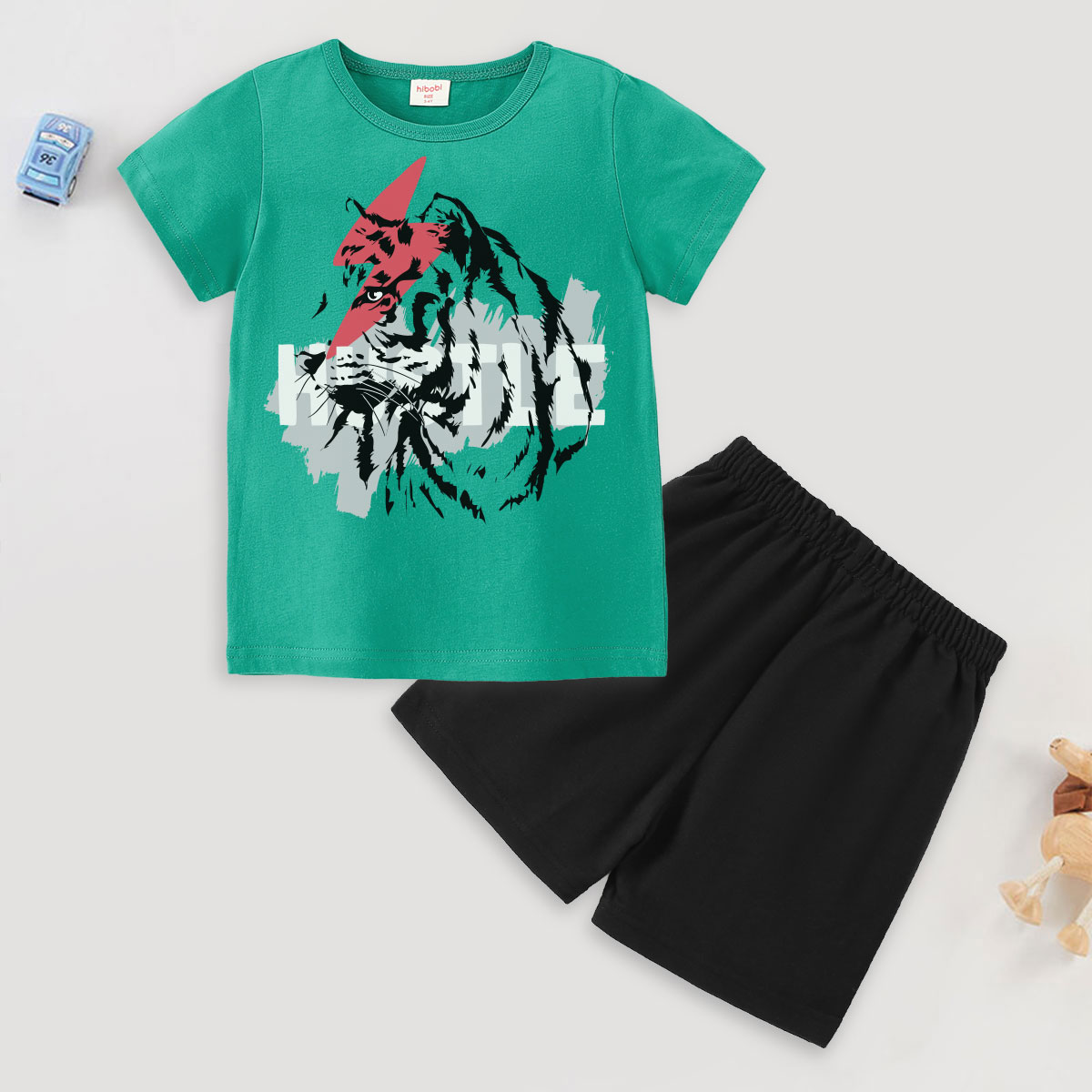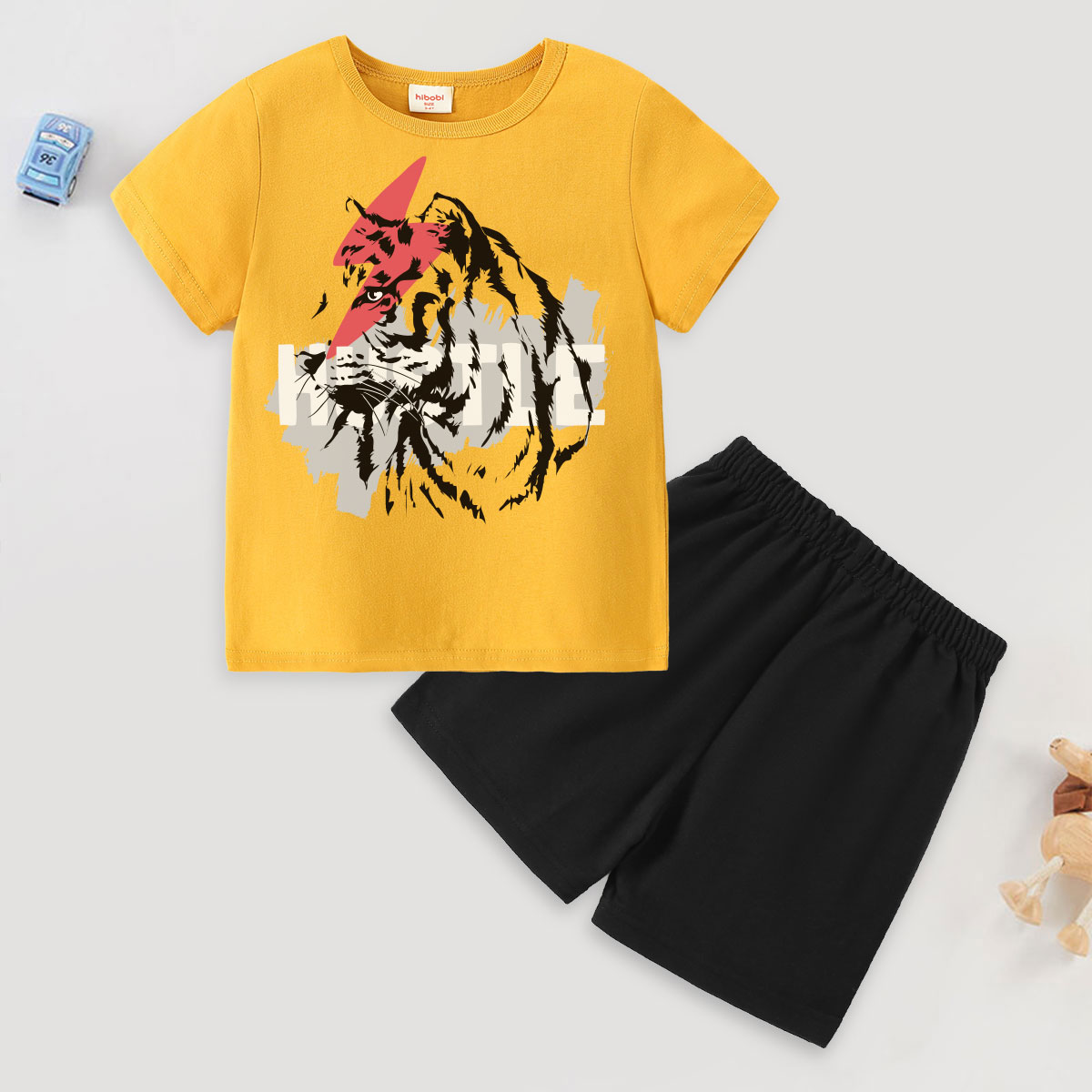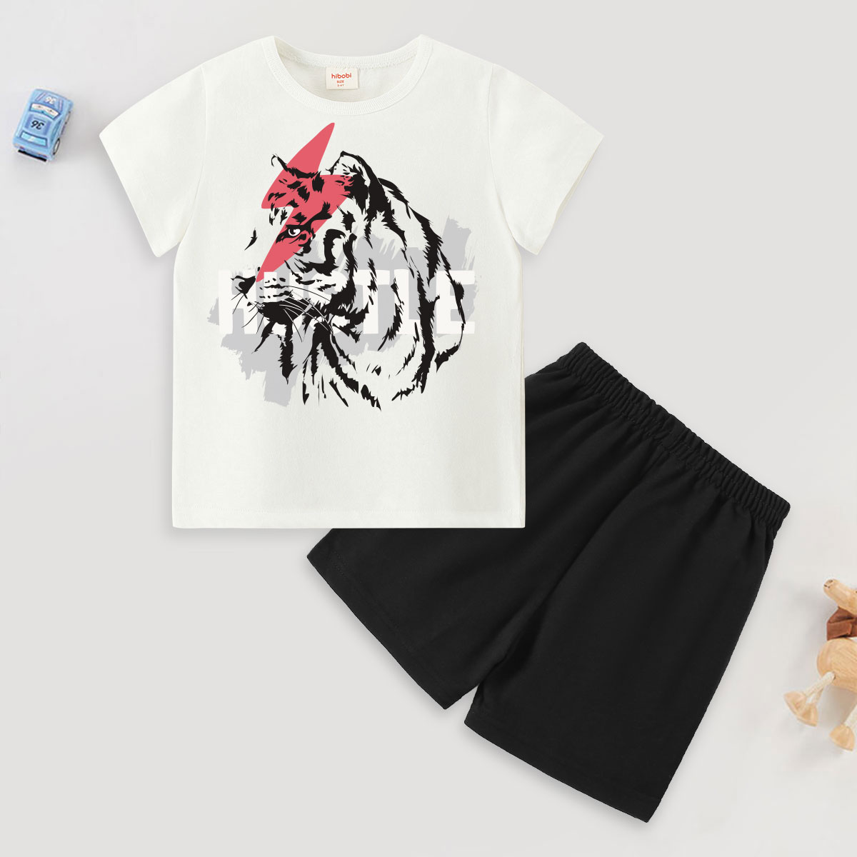 Toddler Boy Lightning Tiger Print Short Sleeve Suit Wholesale