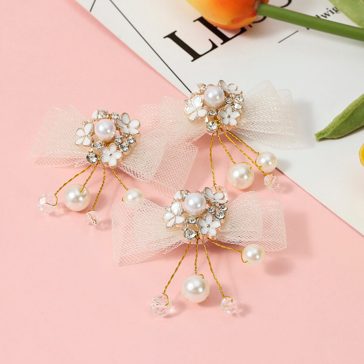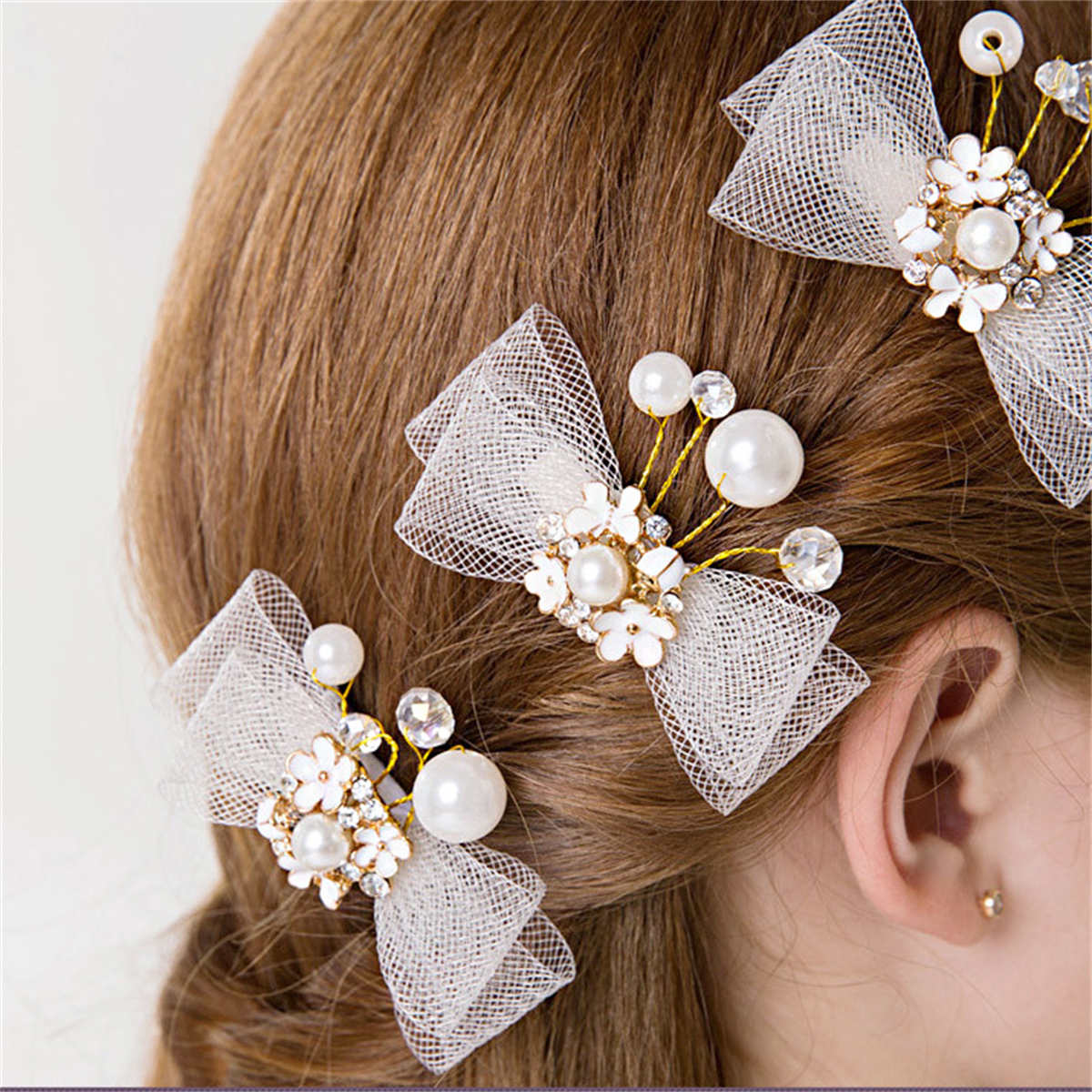 Kid Girl Pearl Bow Hair Clip Wholesale