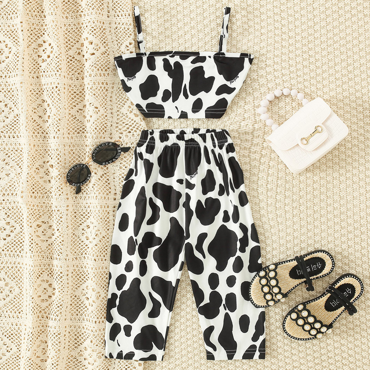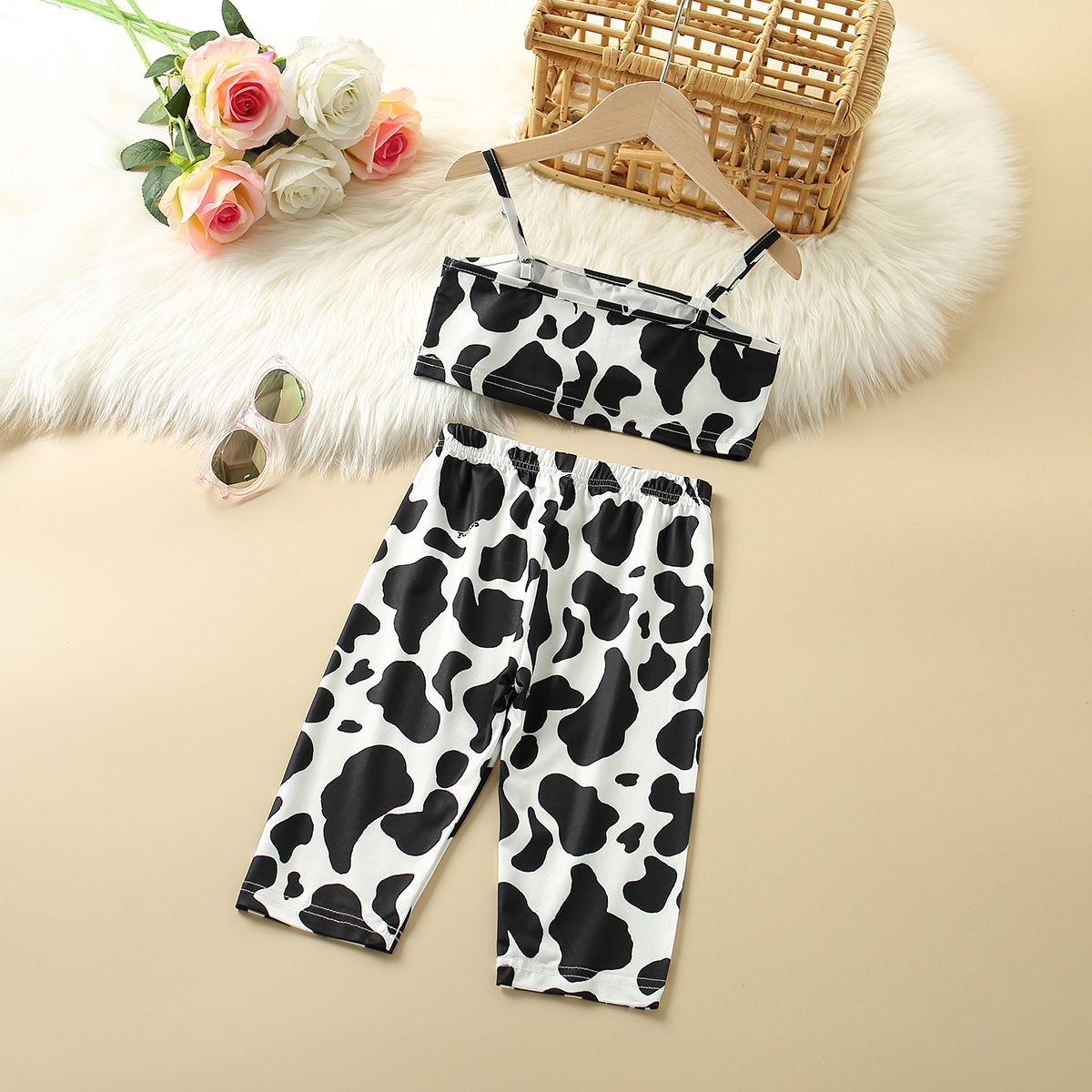 Kids Girls Cow Print Slip Vest & Shorts Set Wholesale