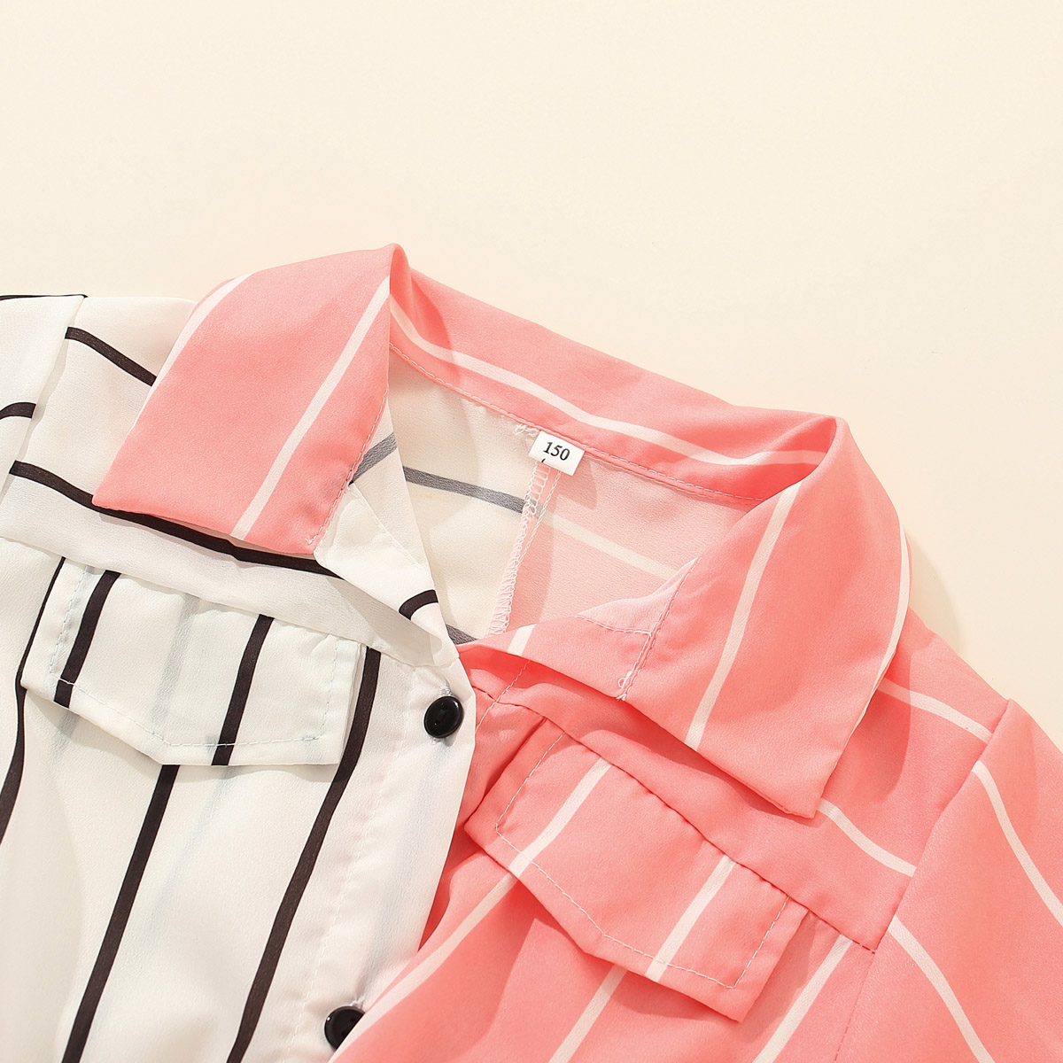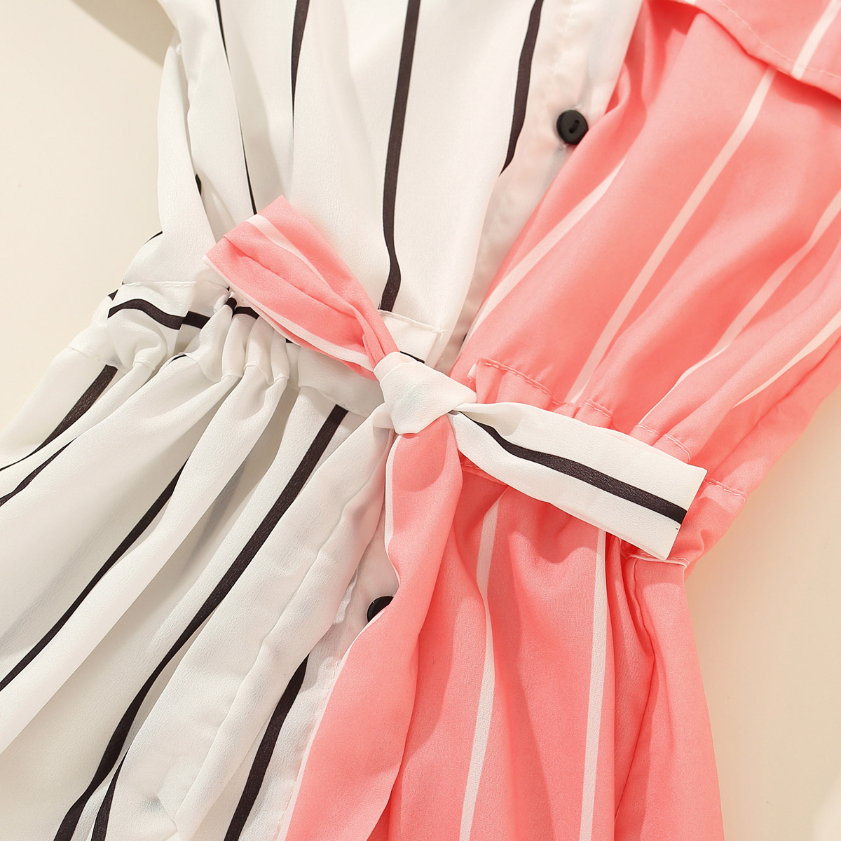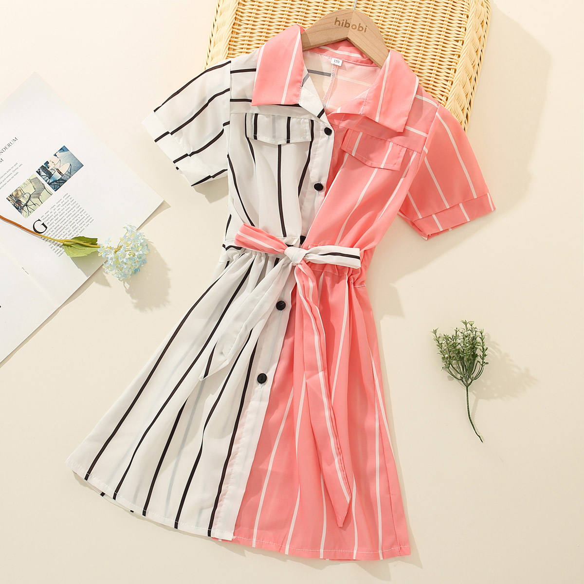 Kids Girls Summer Color-block Stripes Shirt Dress Wholesale