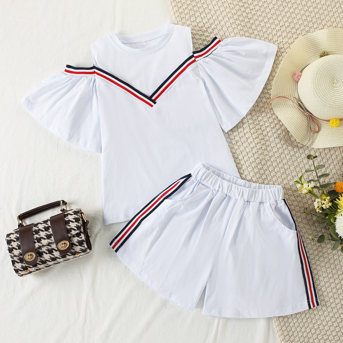 Kids Girls Summer Party Vacation Daily Stripes Suspender Strapless Suit Wholesale