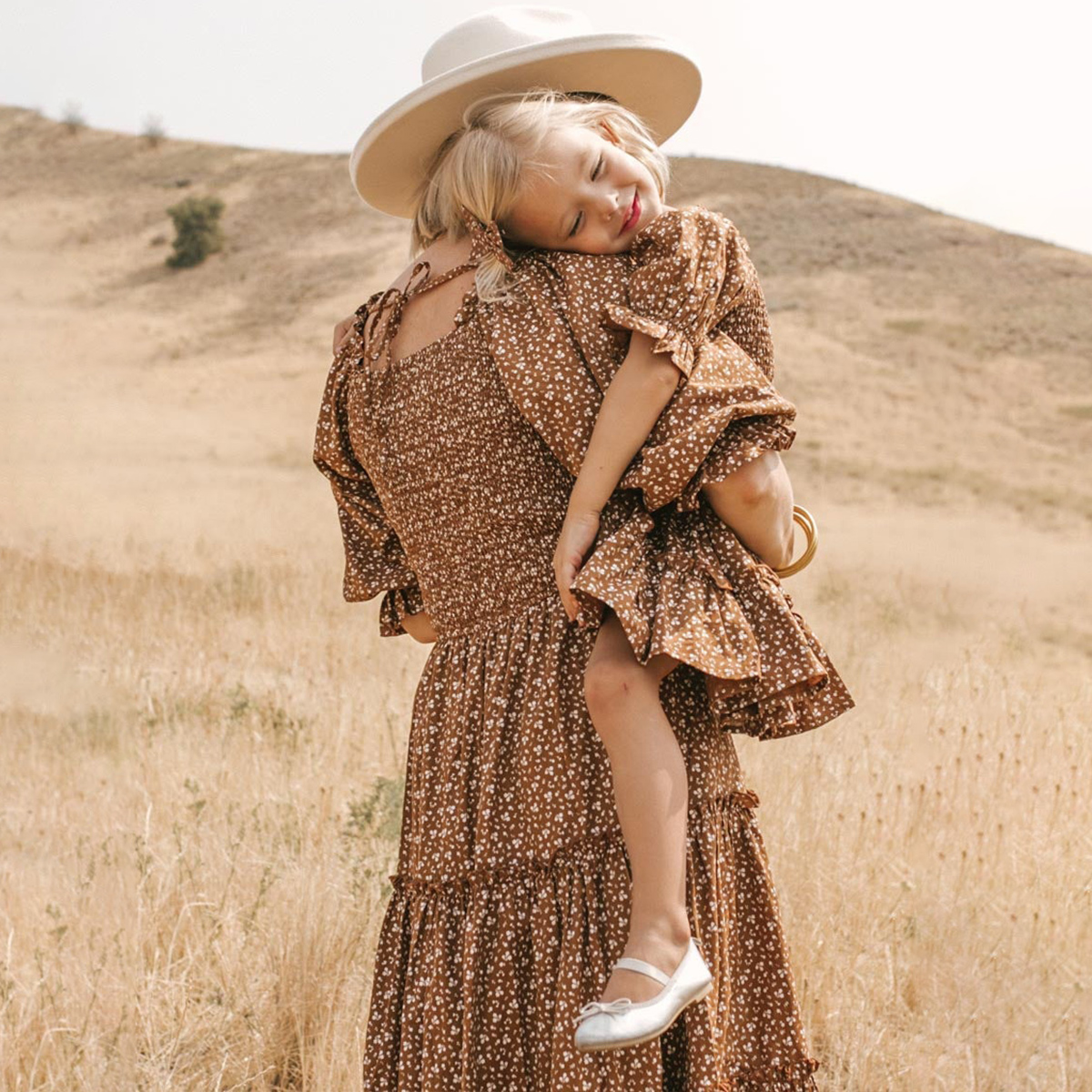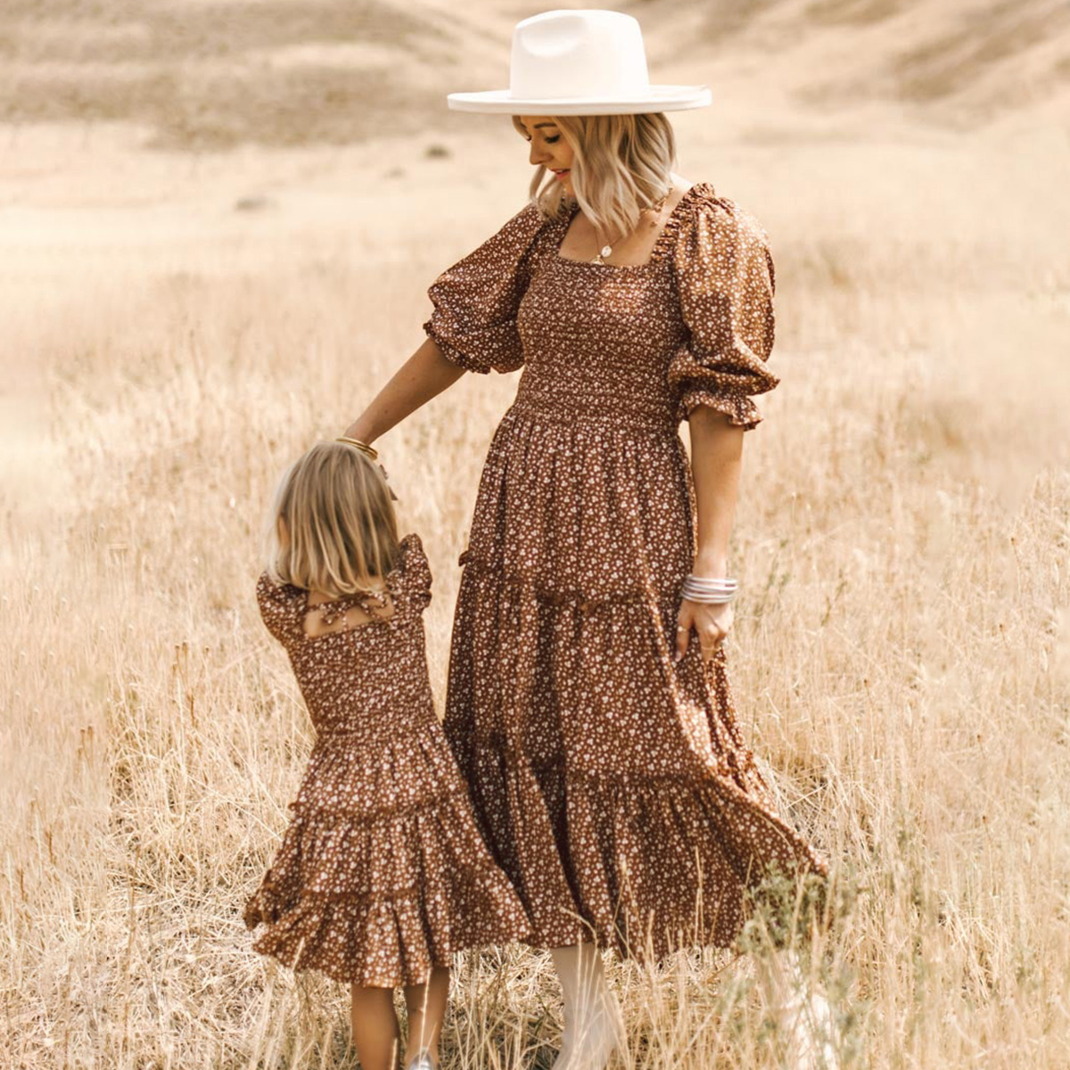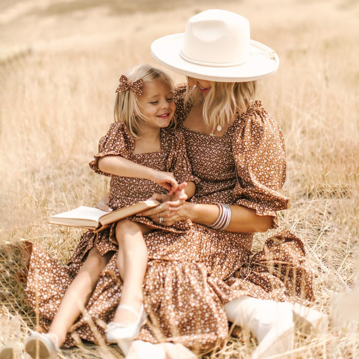 Sweet Floral Print Puff Sleeve Dress for Mom and Me Wholesale