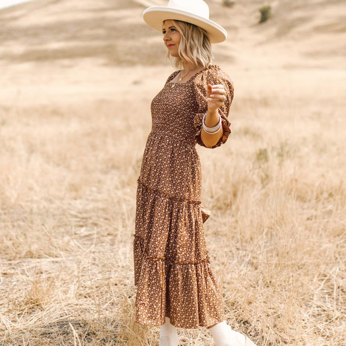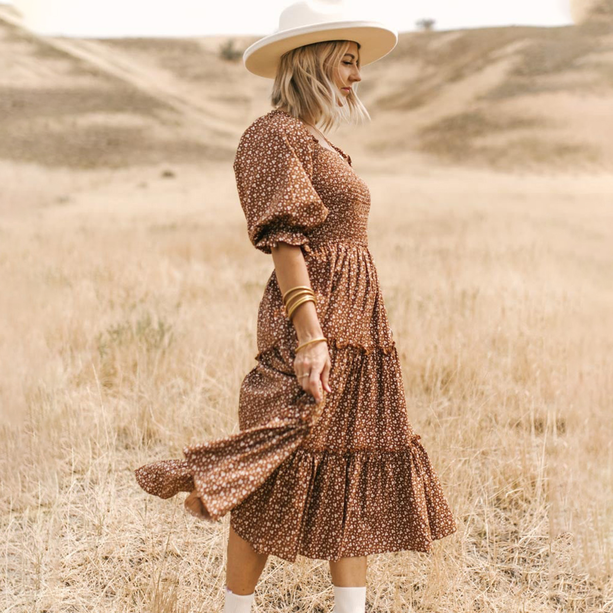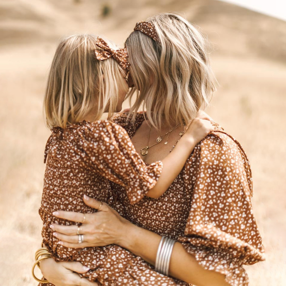 Sweet Floral Print Puff Sleeve Dress for Mom and Me Wholesale